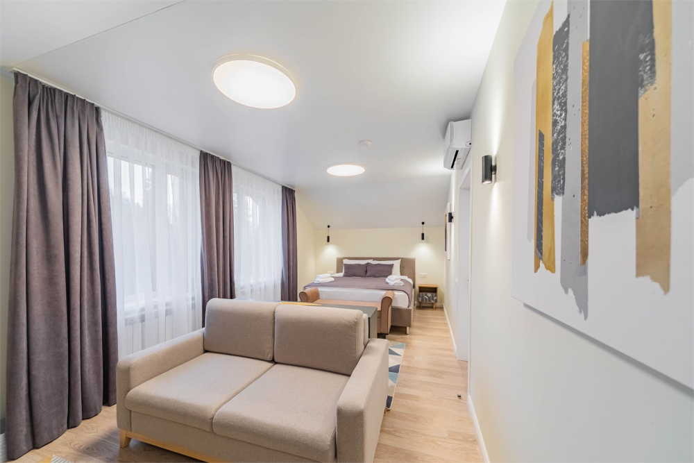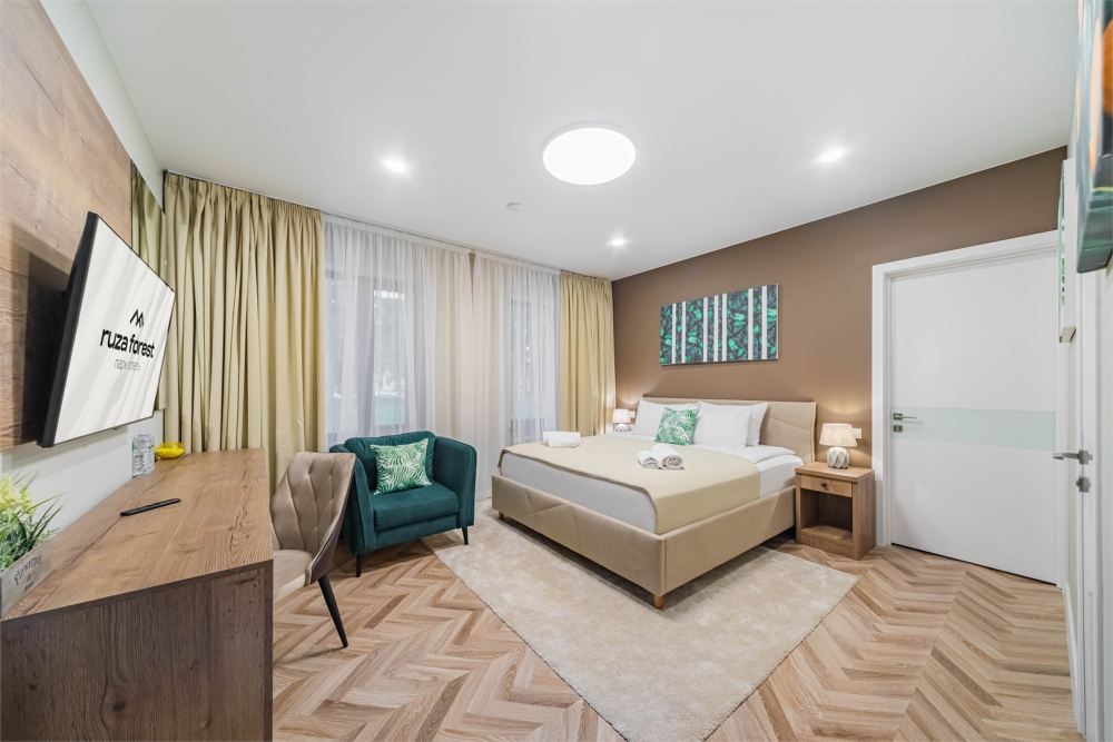 В окружении рузского леса, на живописном берегу Москвы-реки расположился парк-отель — место, где легко замедлиться и почувствовать настоящую гармонию с природой. Это пространство спокойствия и уединения, созданное для тех, кто хочет отдохнуть от ритма города и наполниться энергией природы.