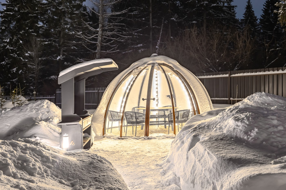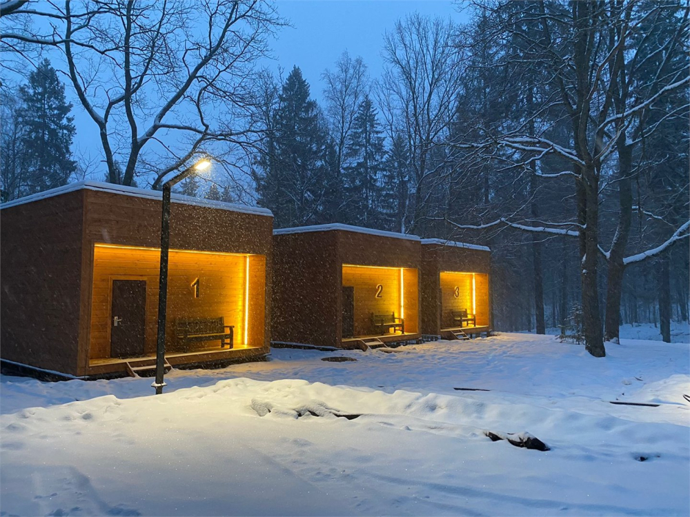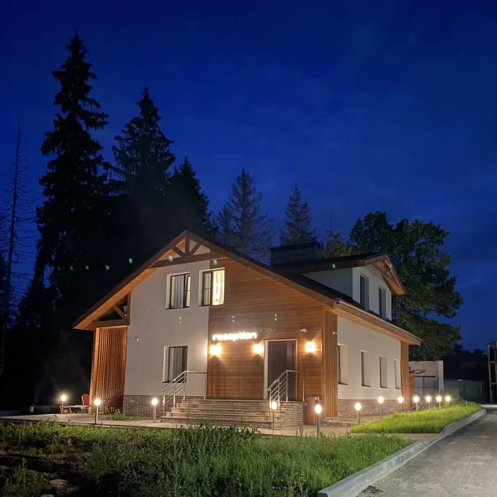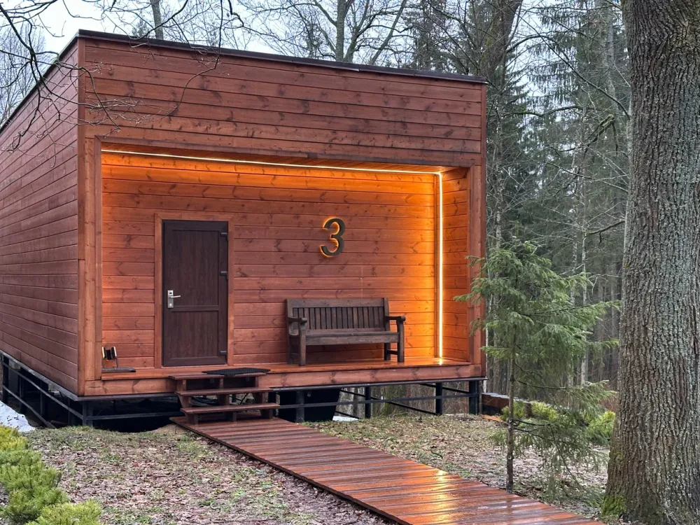 Вечером пространство наполняется тишиной, звуками леса и ощущением полного уединения вдали от городской суеты.