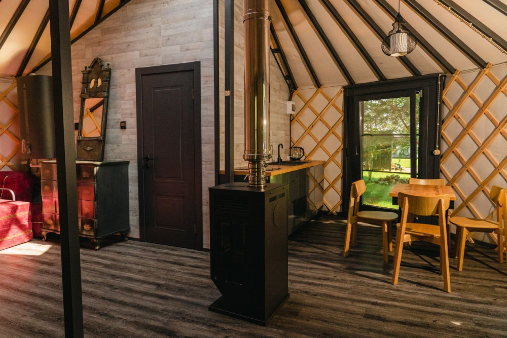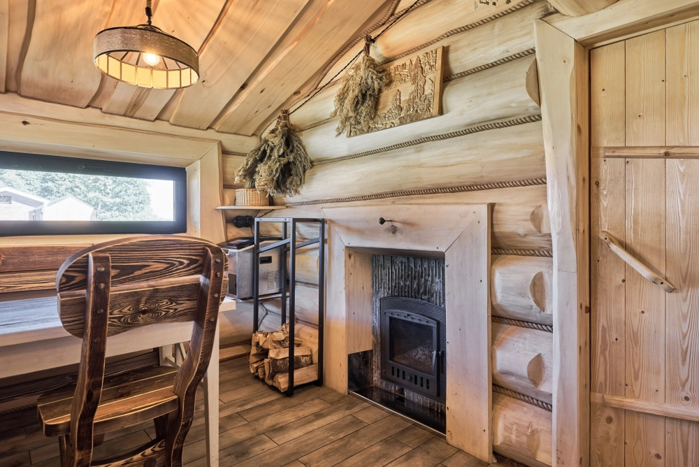 - Уют и тепло: Комфортные гостевые домики, обустроенные для отдыха в любое время года. Внутри — настоящая русская печь для неповторимой атмосферы.