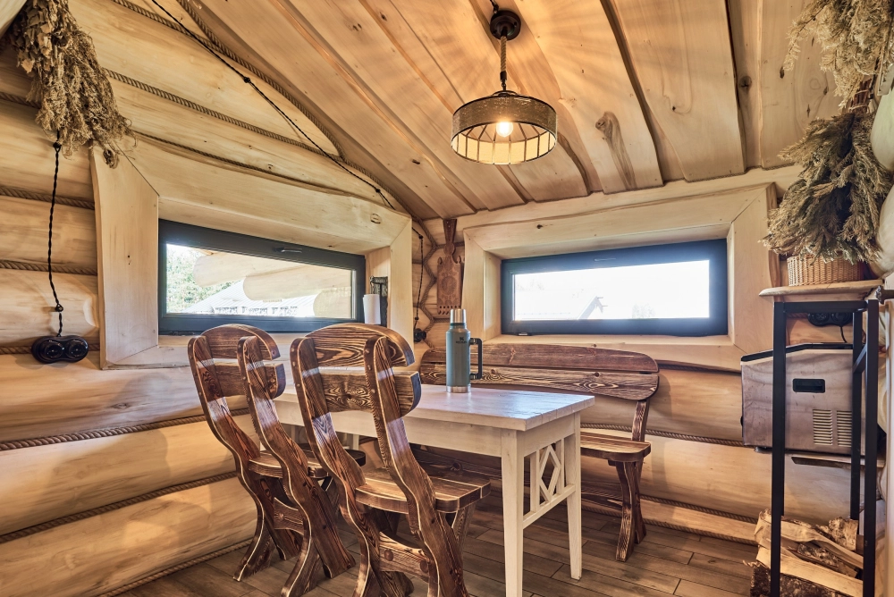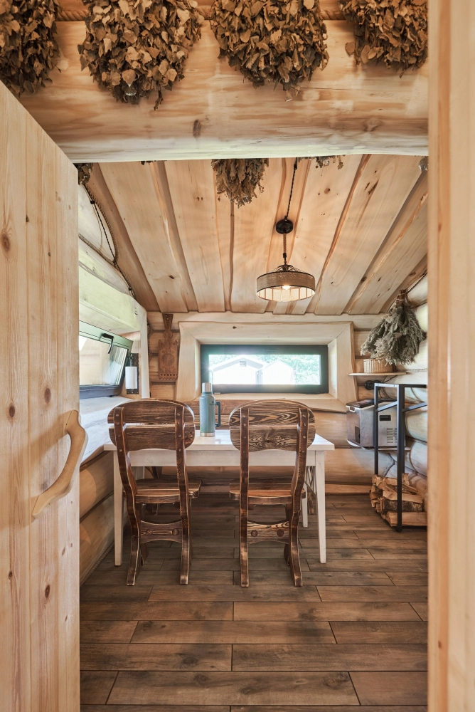 - Целительная баня: Традиционная парная из липы с купелью. Хозяин сам готовит для гостей ароматные травяные чаи для душевных разговоров.