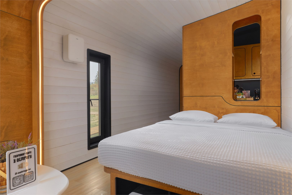 Каждый юнит на берегу — это отдельно стоящее пространство со всеми удобствами, полностью оснащенное для полноценного отдыха, приготовления еды и удаленной работы