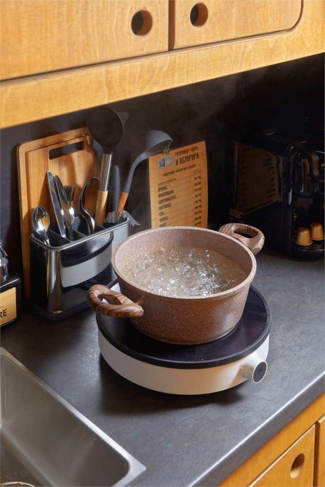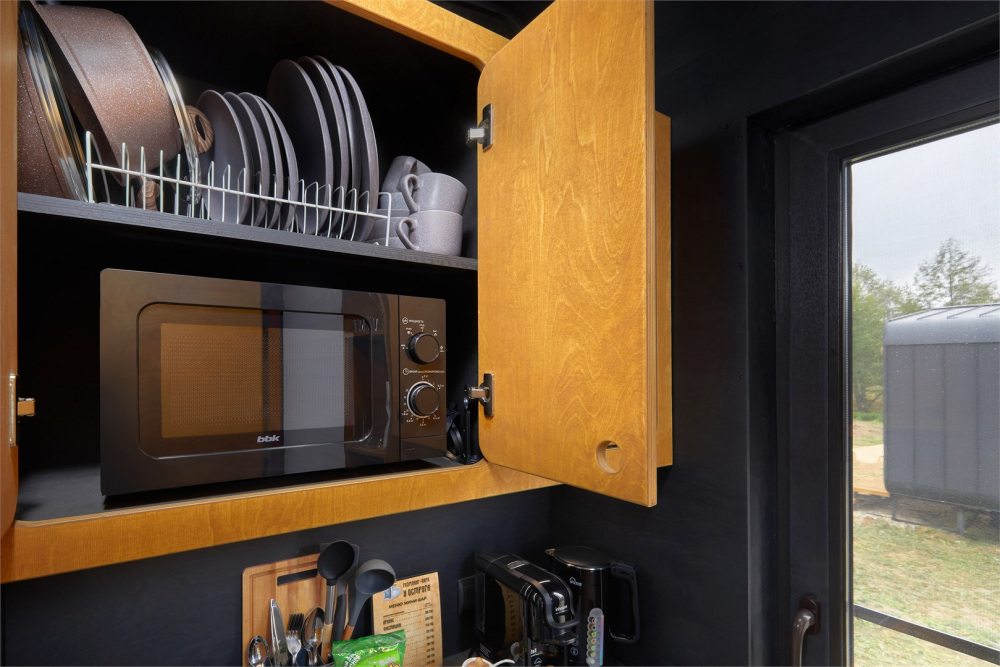 — Кухонная зона со всем необходимым инвентарем и посудой