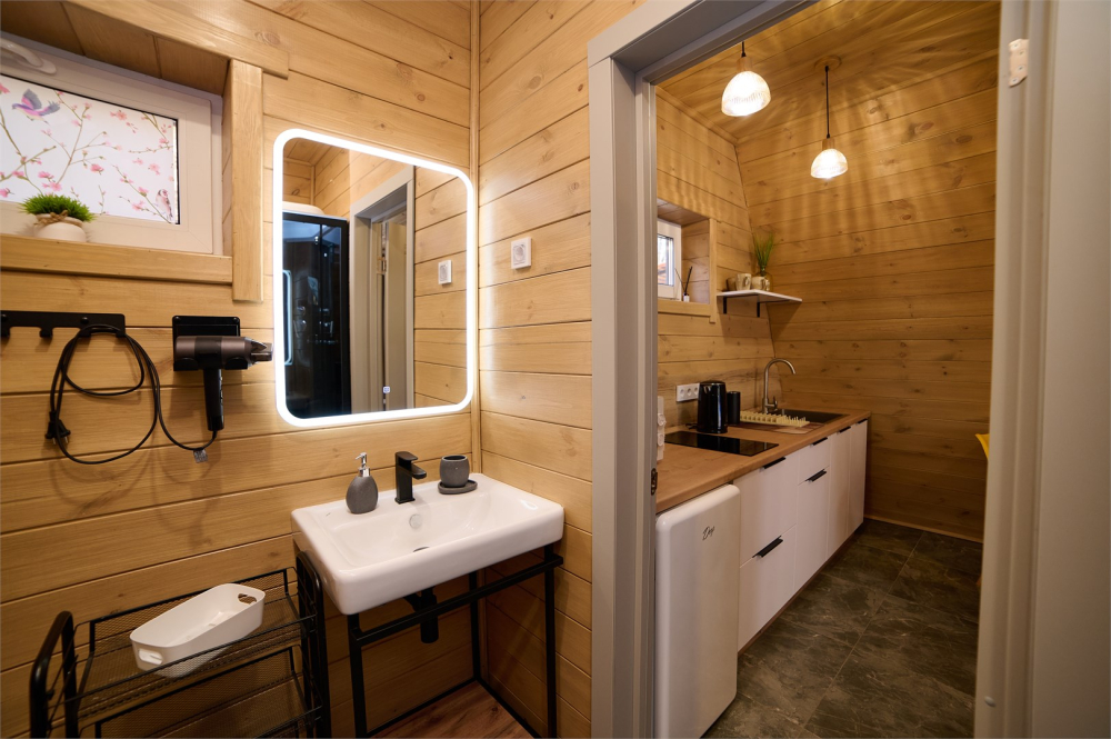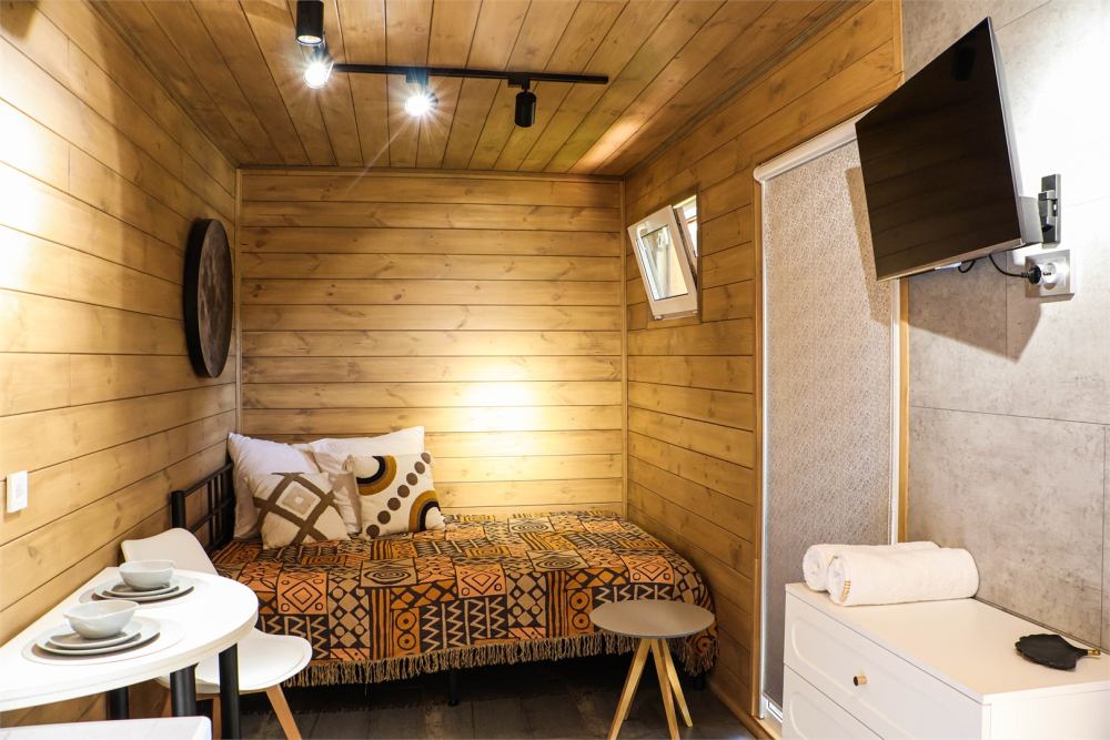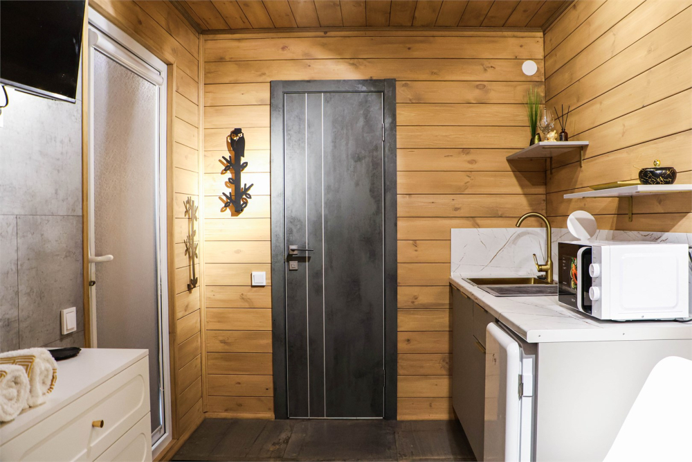 Мангальная зона есть около домиков А-frame comfort +, Номер в модульном доме.