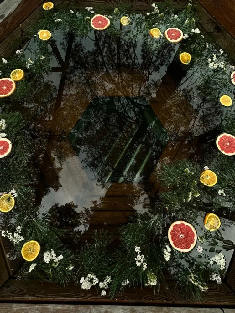 Банный чан с цитрусом и еловыми ветками. Стоимость 2500р/час аренда от 2 часов. Комбо баня+чан 11000 за 2 часа