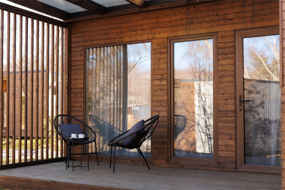 - Однокомнатный домик с панорамными окнами и террасой