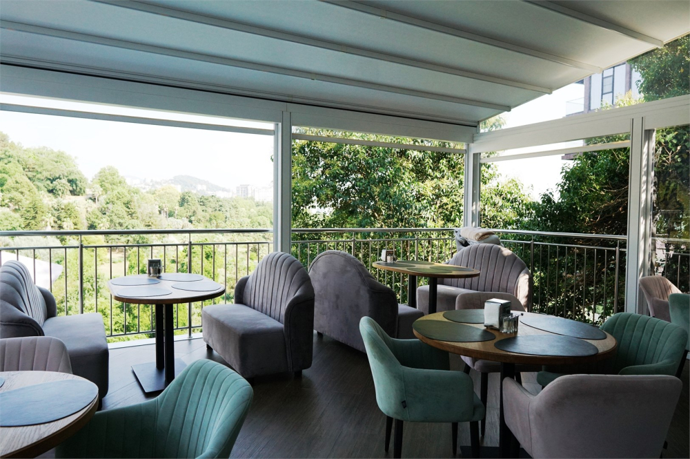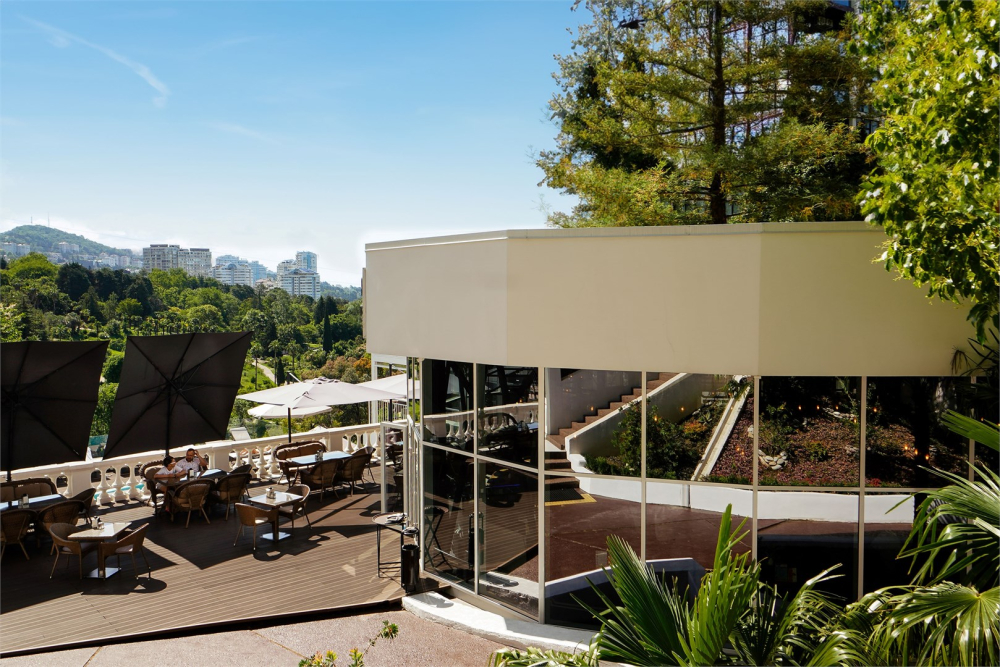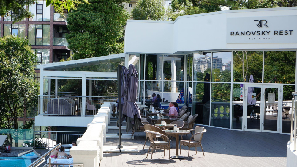 Панорамный ресторан с видом на Дендрарий и открытой террасой - идеальное место для тех, кто хочет вкусно поесть и насладиться прекрасными пейзажами природы.