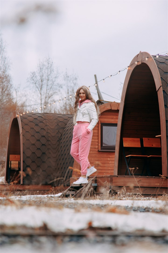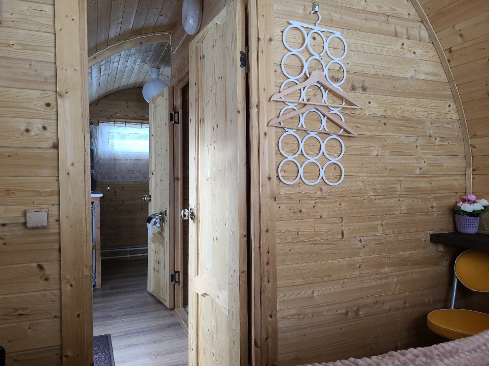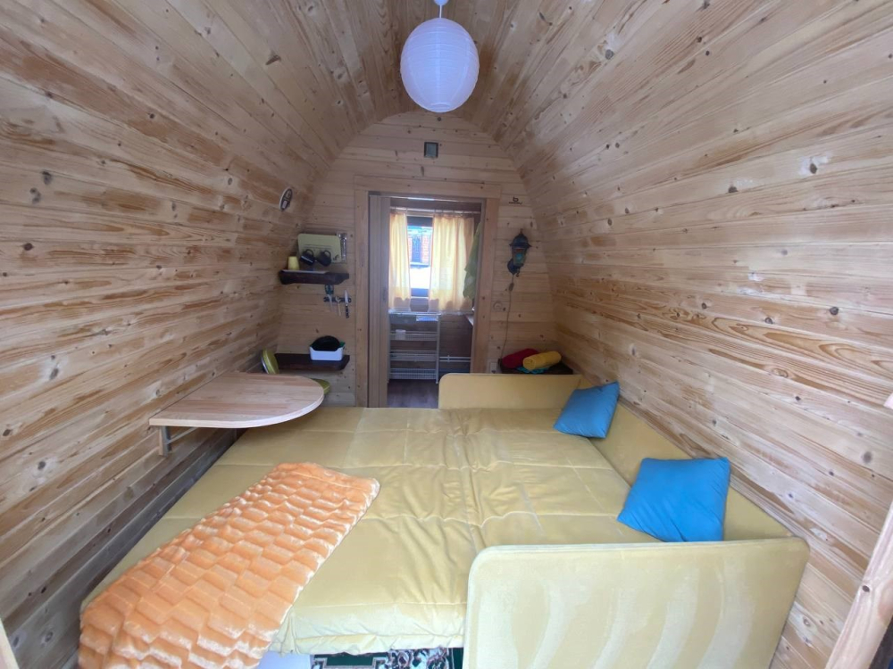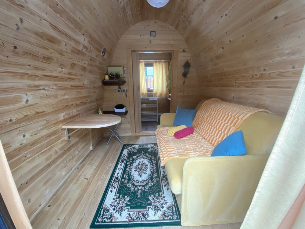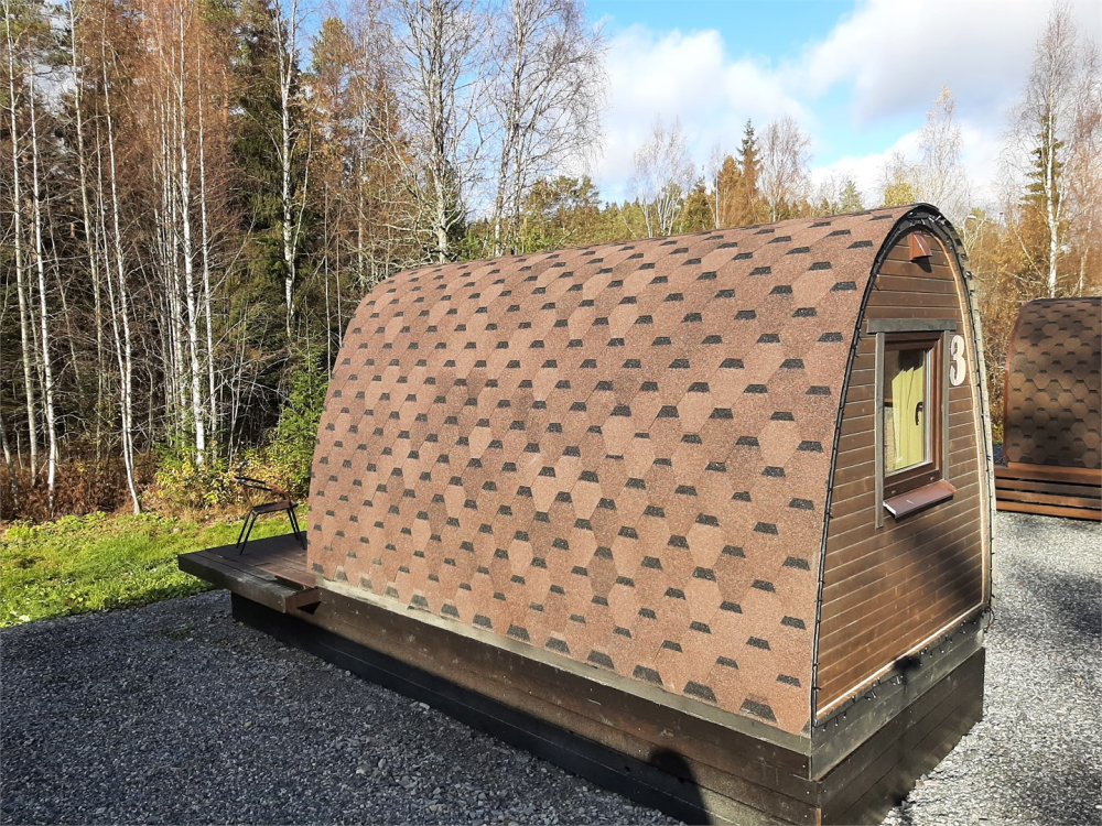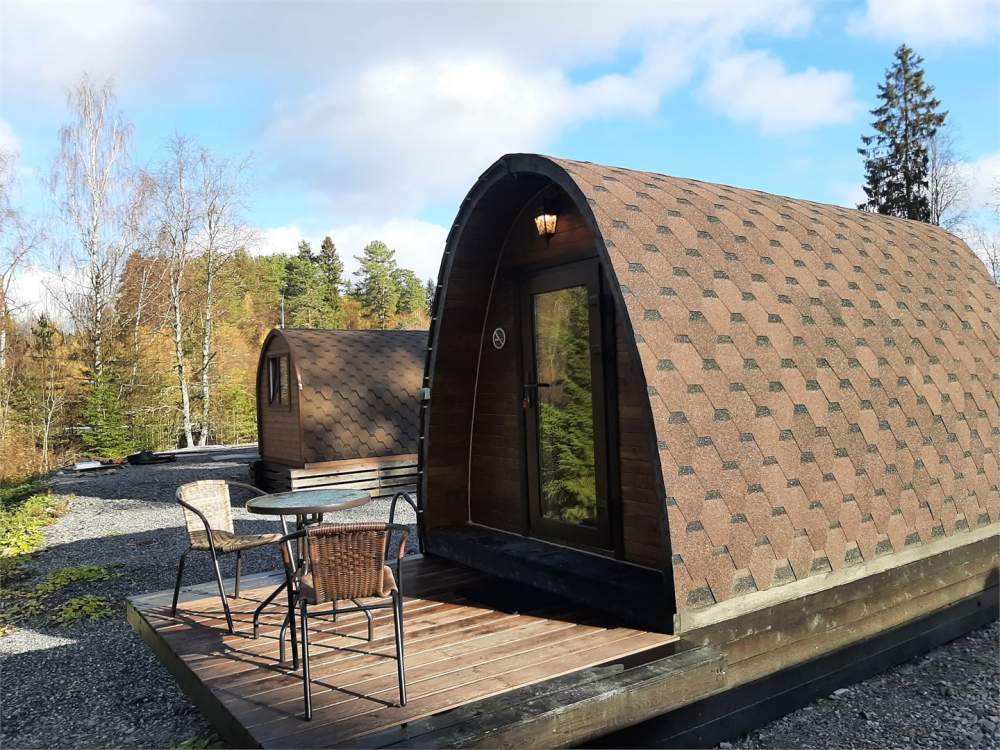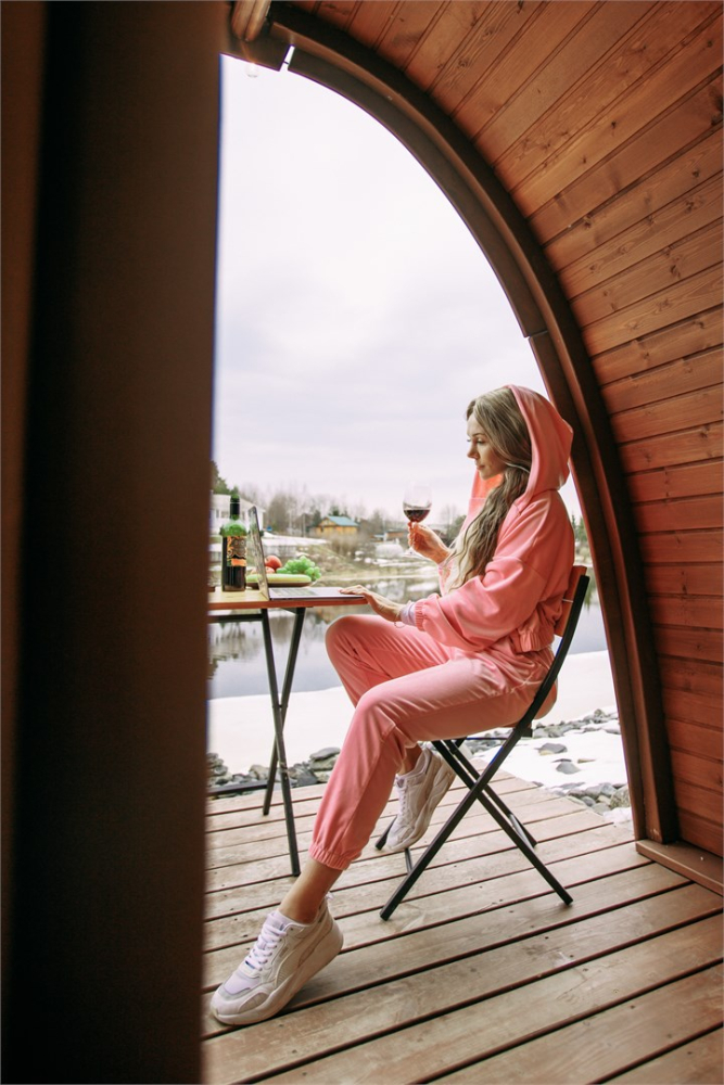 Небольшой арочный домик для отдыха с видом на лесной массив и отдельной террасой готов принять максимум двух гостей. В домике находится удобный двуспальный раскладной диван (1400*2000).