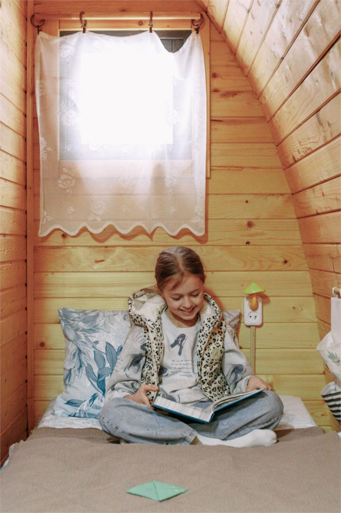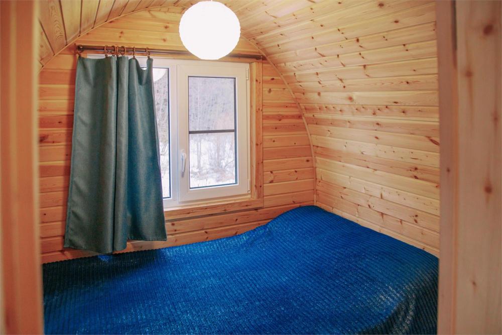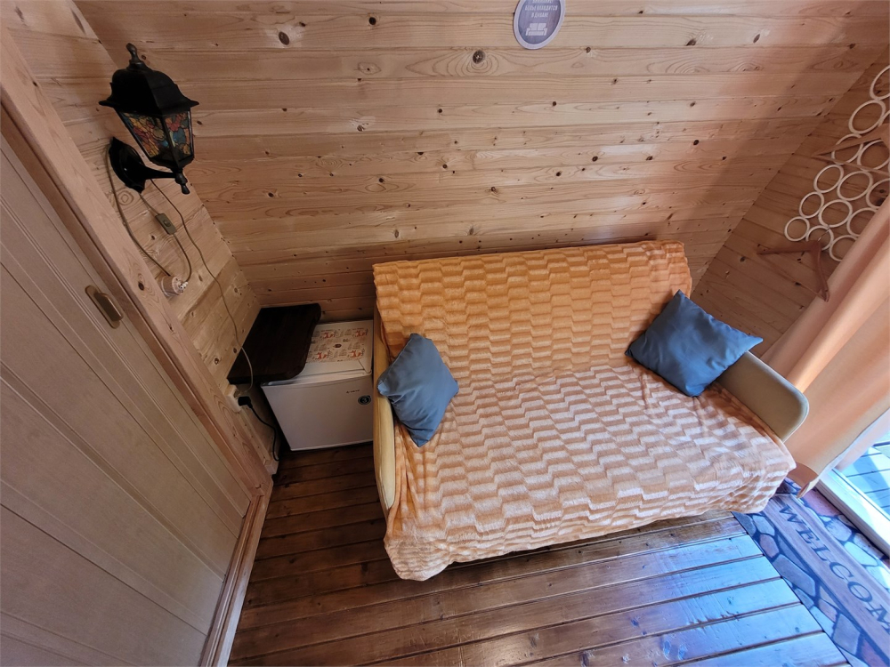 Небольшой арочный домик для отдыха с видом на лесной массив и отдельной террасой готов принять гостей по системе 2+1 (2 человека могут расположиться на удобном двуспальном диване (1400*2000) + 1 дополнительное место в виде односпальной кровати (900*2000).