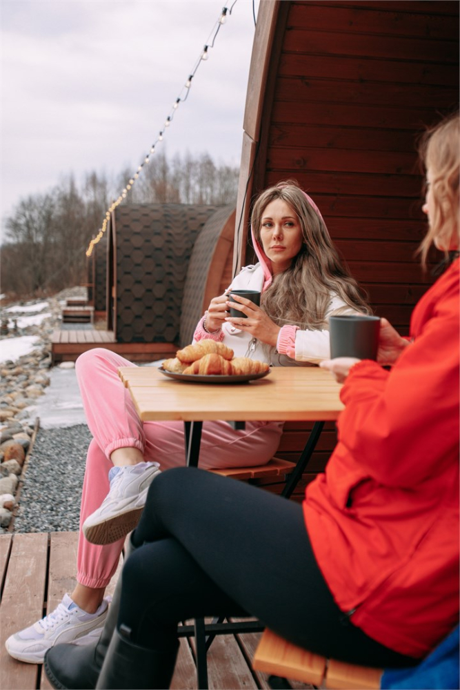 Релакс: настоящая кедровая баня и парение в горячем банном чане под открытым небом.