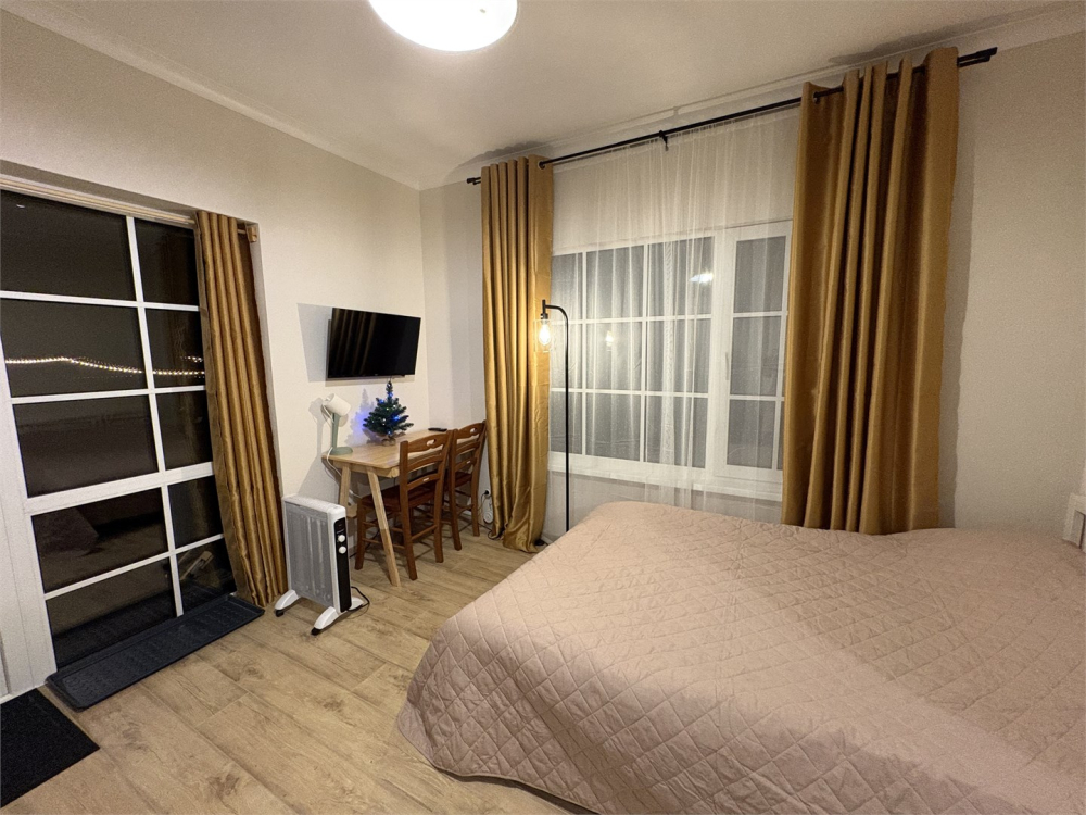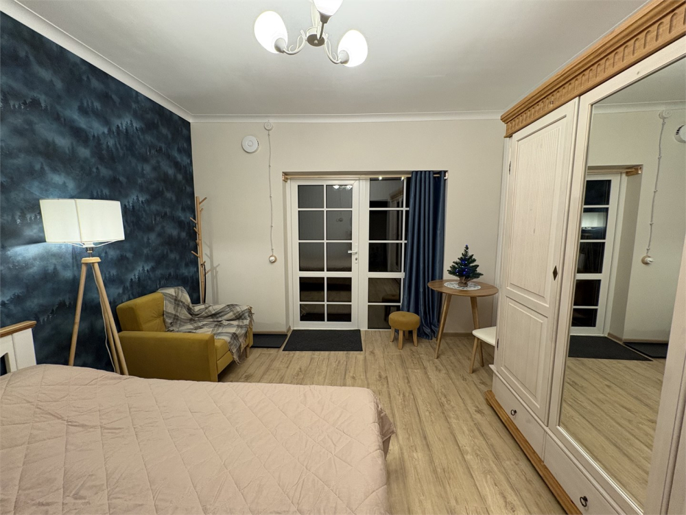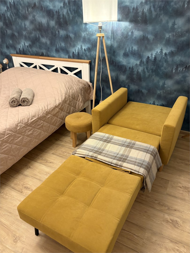 Уютный и светлый твинхаус для отдыха с видом на гору и лесной массив готов принять гостей по системе 2+1 (2 человека могут расположиться на удобной двуспальной кровати (1400*2000) + 1 дополнительное место в виде кресла-кровати со спальным местом 600*2000. Идеально подойдет для семьи с детьми.