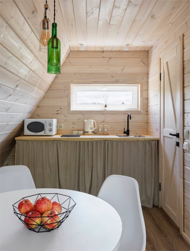 - 10 стильных домиков — геокупола и A-frame, вмещающие до 40 гостей. Полностью оснащены всем необходимым: удобная мебель, бытова техника и уютный декор для вашего максимального комфорта.