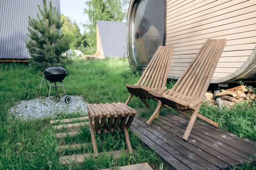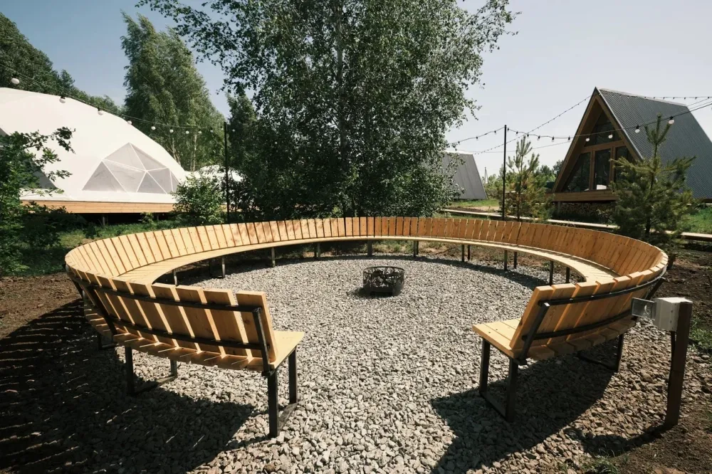 На территории глемпинга есть костровая зона для уютных вечеров у огня.