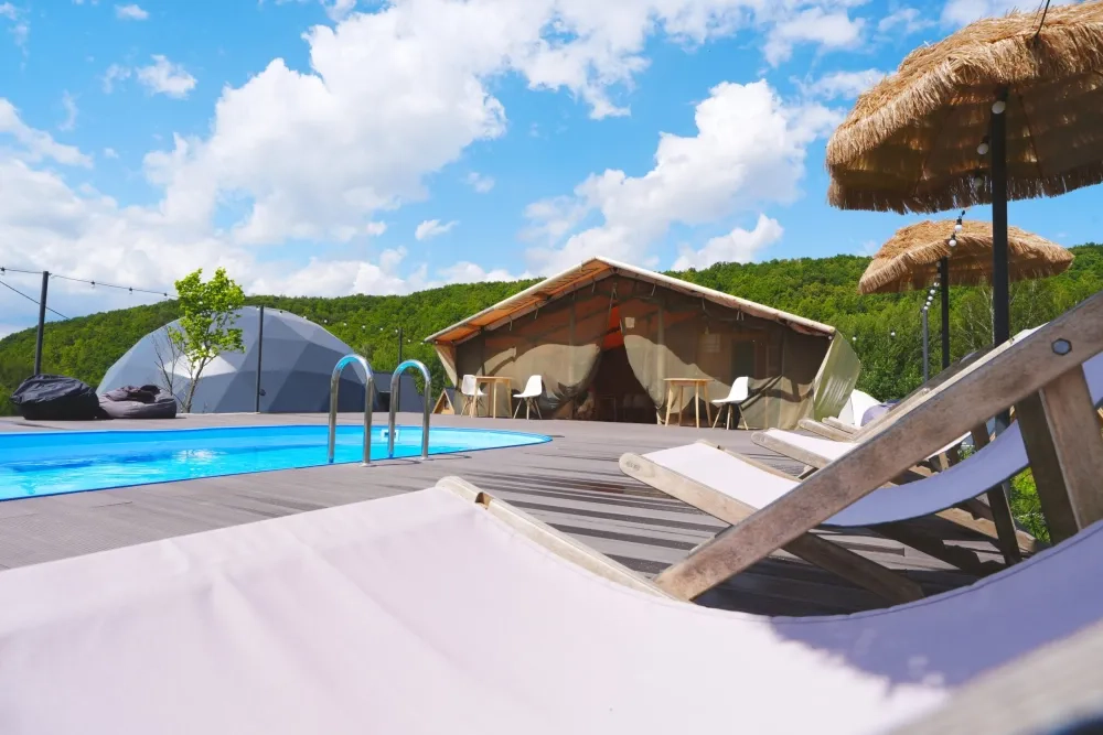 Глэмпинг у холмов с бассейном #1824