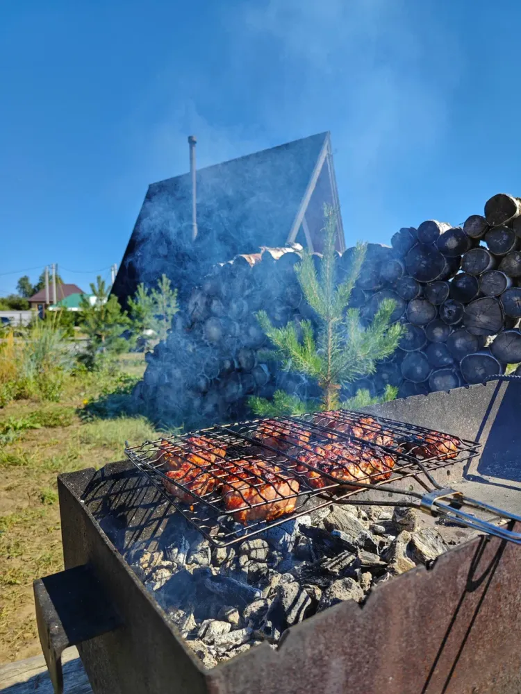 Мангальная зона есть около домиков Дом А-фрейм, Гостевой дом в лесу.