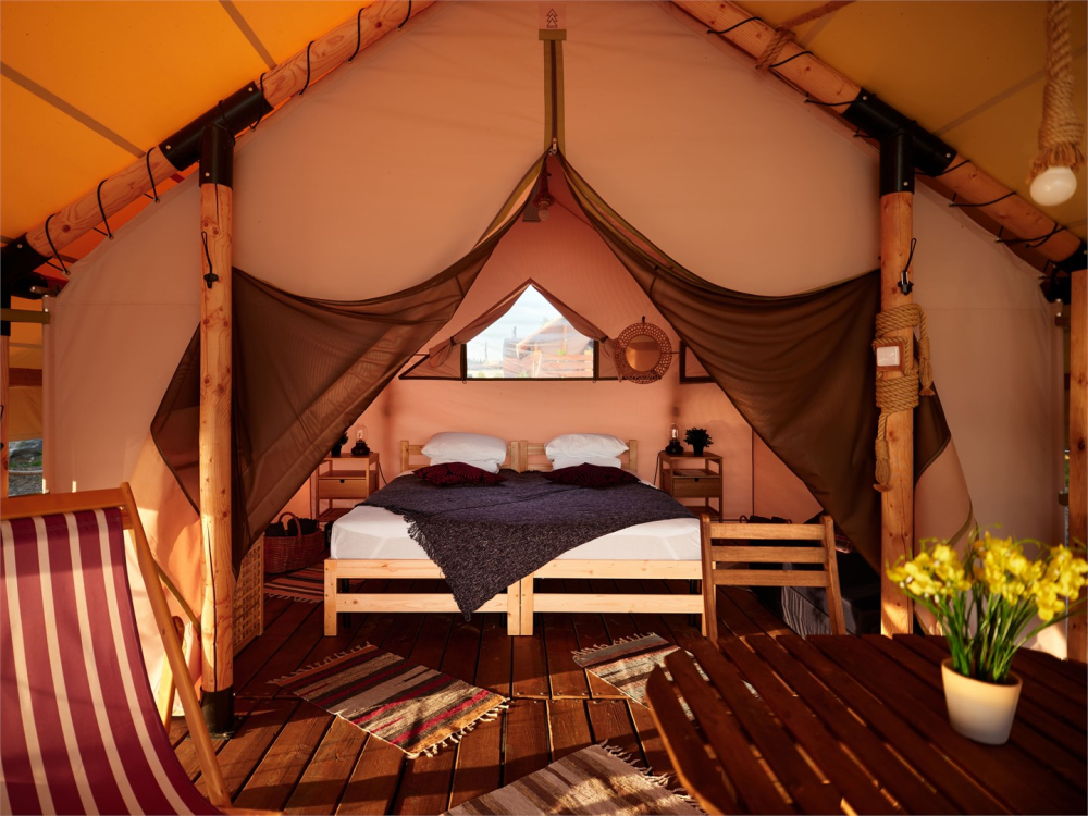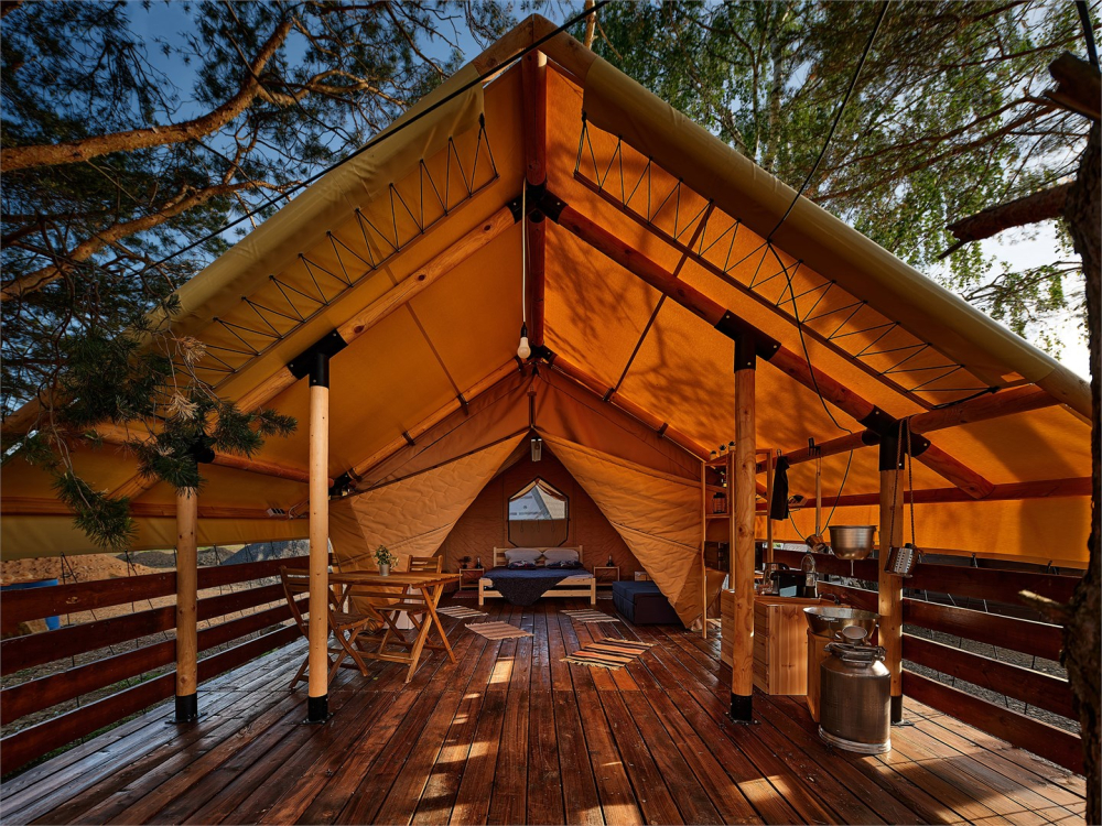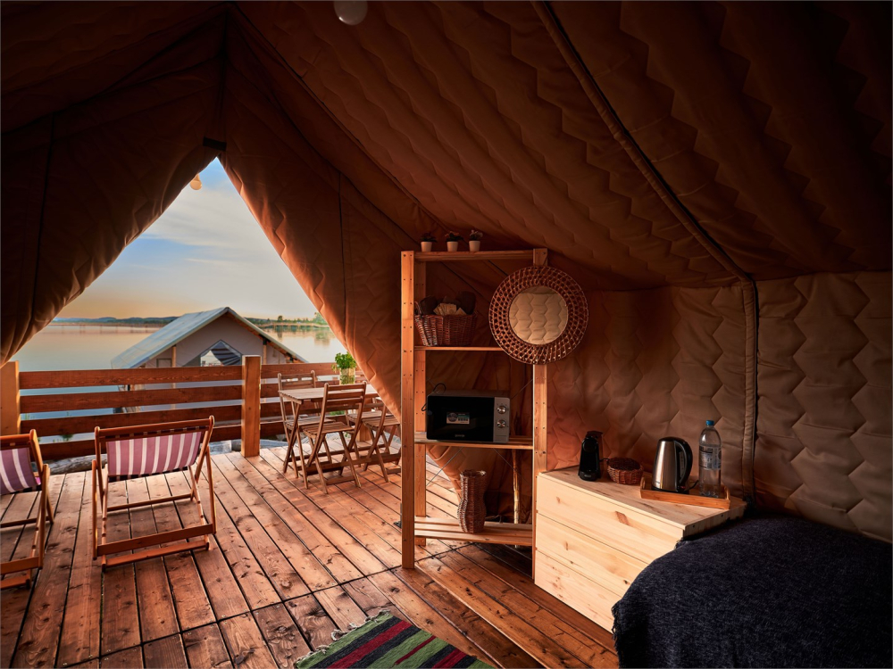 Просторные сафари-тенты Стильные, полностью оборудованные, с уютными интерьерами и панорамным видом на воду