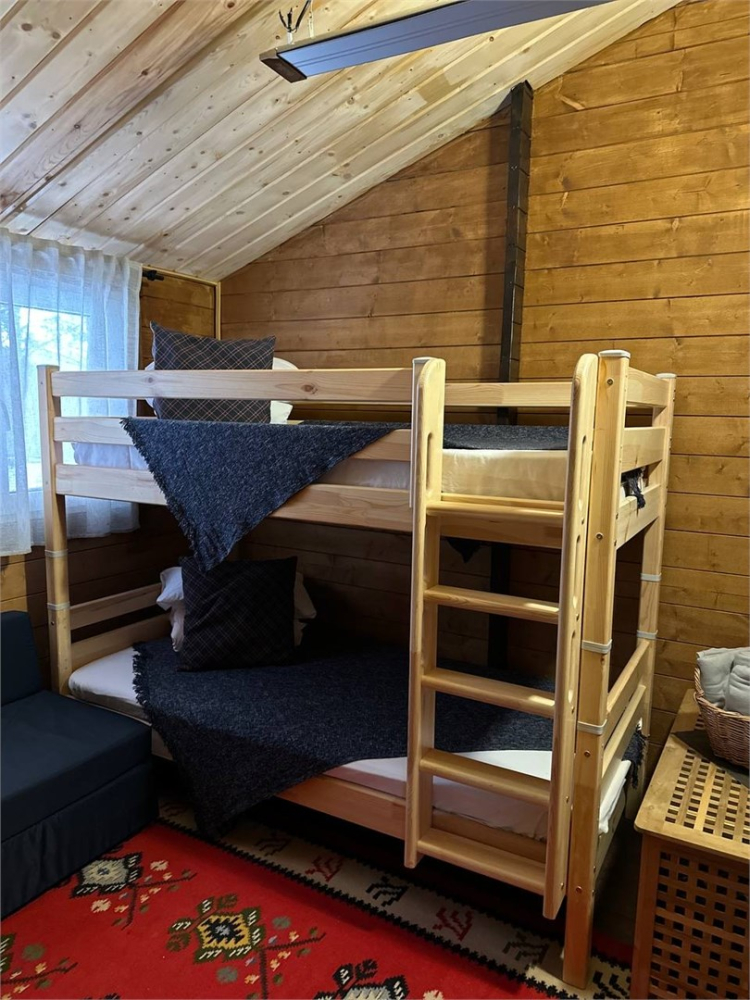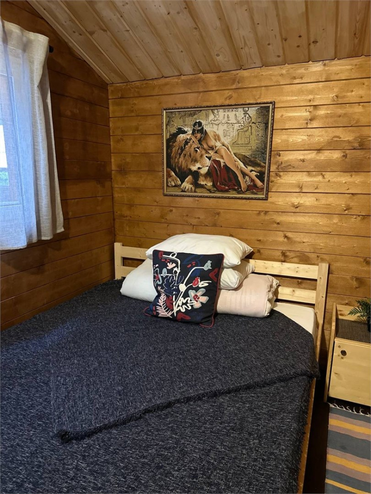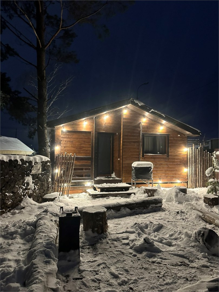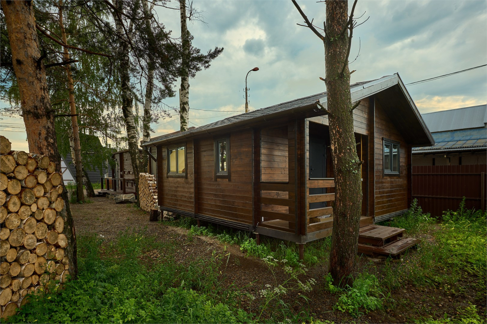 Деревянный трех комнатный дом 36 м кв. в сосновом лесу с небольшой террасой, индивидуальной костровой и мангальной зоной. Подходит для семьи или компании. Количество спальных мест 4 и 2 доп. места. В доме есть все необходимое для отдыха и приготовления еды. Гостинная с кухней, спальня с большой кроватью и комната с двух ярусной кроватью, небольшая прихожая. В гостинной из окна открывается вид на реку Кама. Двухместный раскладной диван (доп. 2 места ), журнальный стол, кухня с мойкой и холодильником, электрический чайник, капсульная кофе-машина, микроволновая печь, индукционная двухконфорочной плита, набор посуды. Барная стойка со стульями. В прихожей зеркало и вешалка. Санузел, душевая кабина, раковина, зеркало, полотенца, фен, шампунь и гель для душа. Отапливается инфракрасными обогревателями и конвектором.