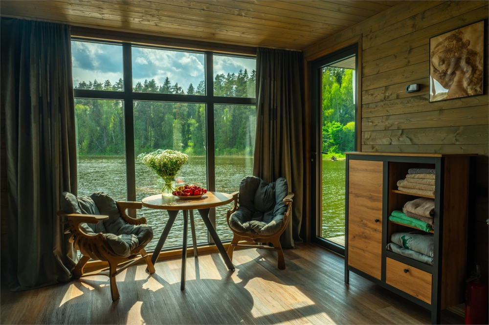 - Дома на воде с собственной баней — приватность, тишина и ощущение полного единения с природой
