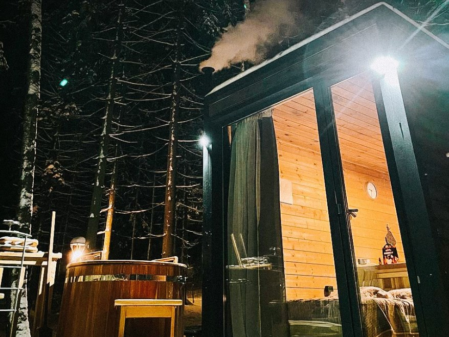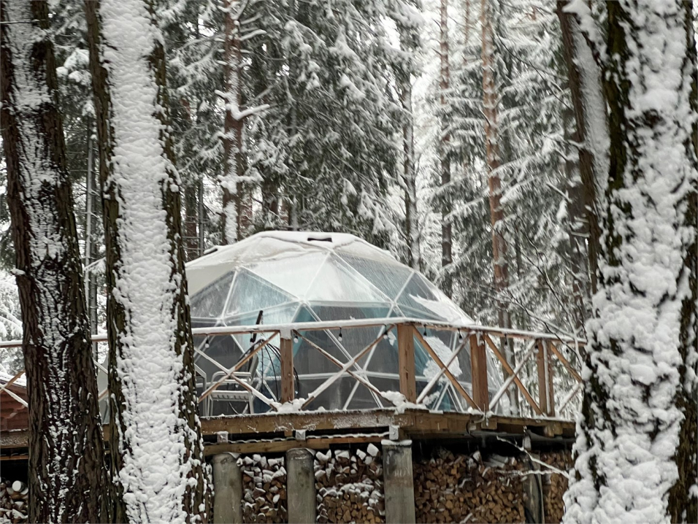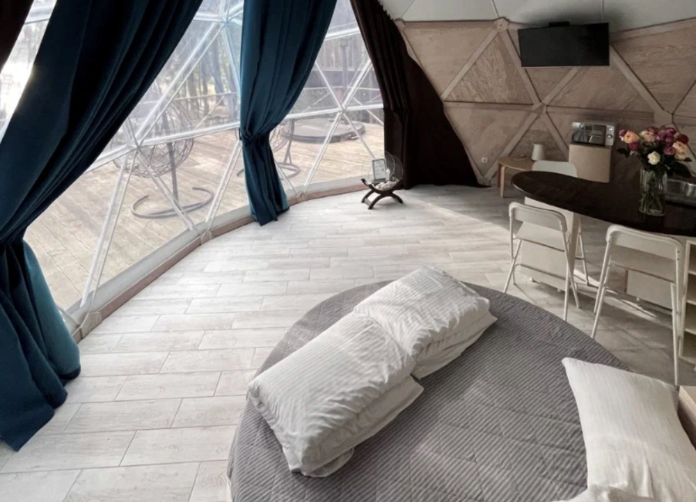 - Купольные дома с панорамным видом и индивидуальными купелями на веранде — идеальны для романтического или уединённого отдыха