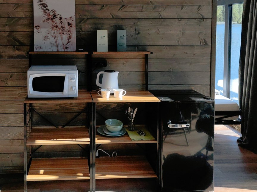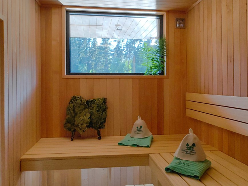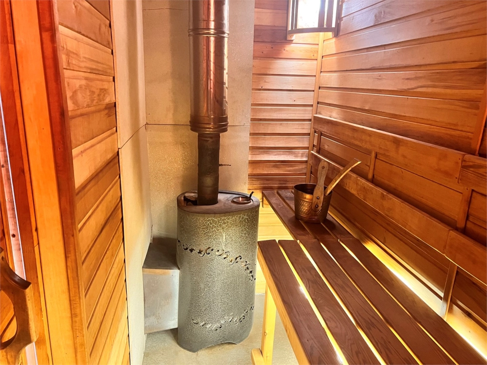 Сауна есть около домиков Дом на воде с сауной, Дом-студия на воде с сауной.