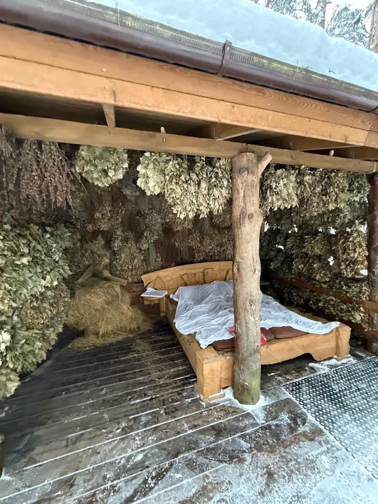 Фурако - деревянная бочка-купель, которая наполняется чистой водой из колодца и нагревается до 38-42 C с помощью дровяной печи и наших истопников! Перед каждым использованием - Фурако тщательно моется! По желанию гостя мы можем добавить различные травы и веники в воду (за доп плату).
