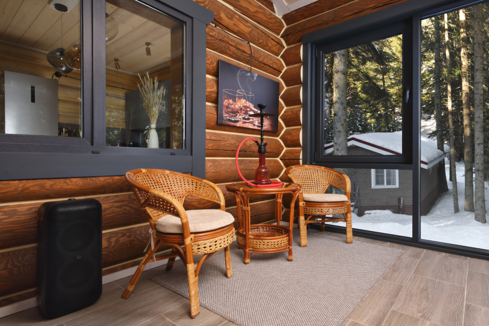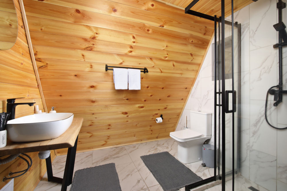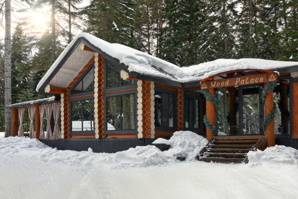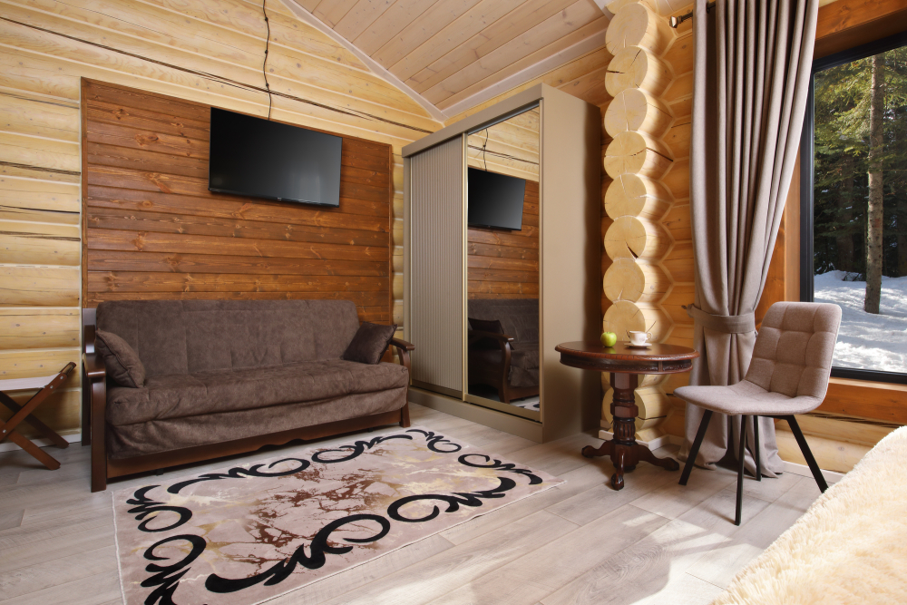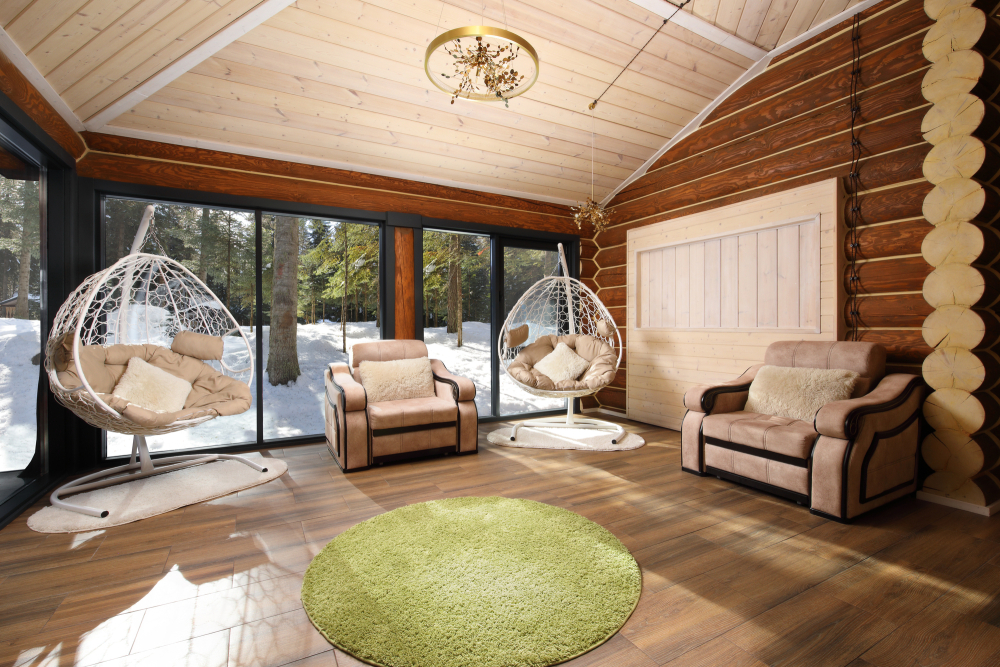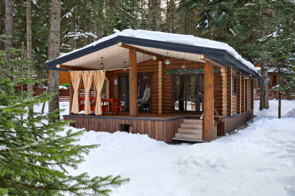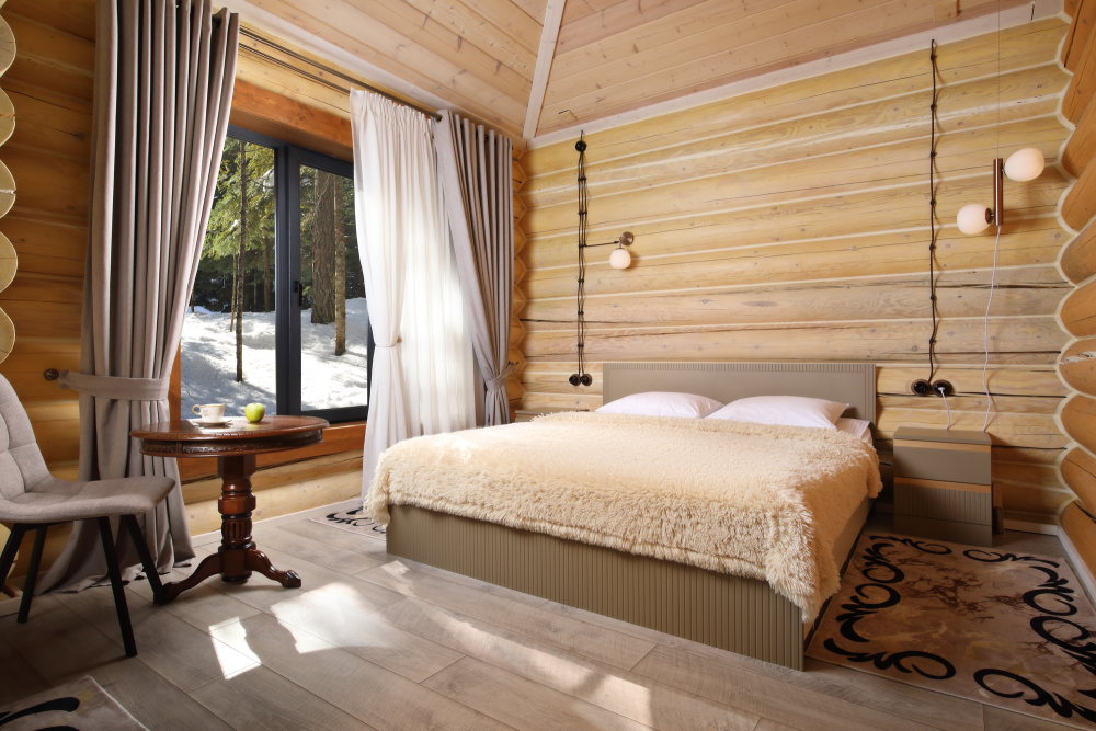 - Просторные А-фреймы (A-Frame) с панорамными окнами.