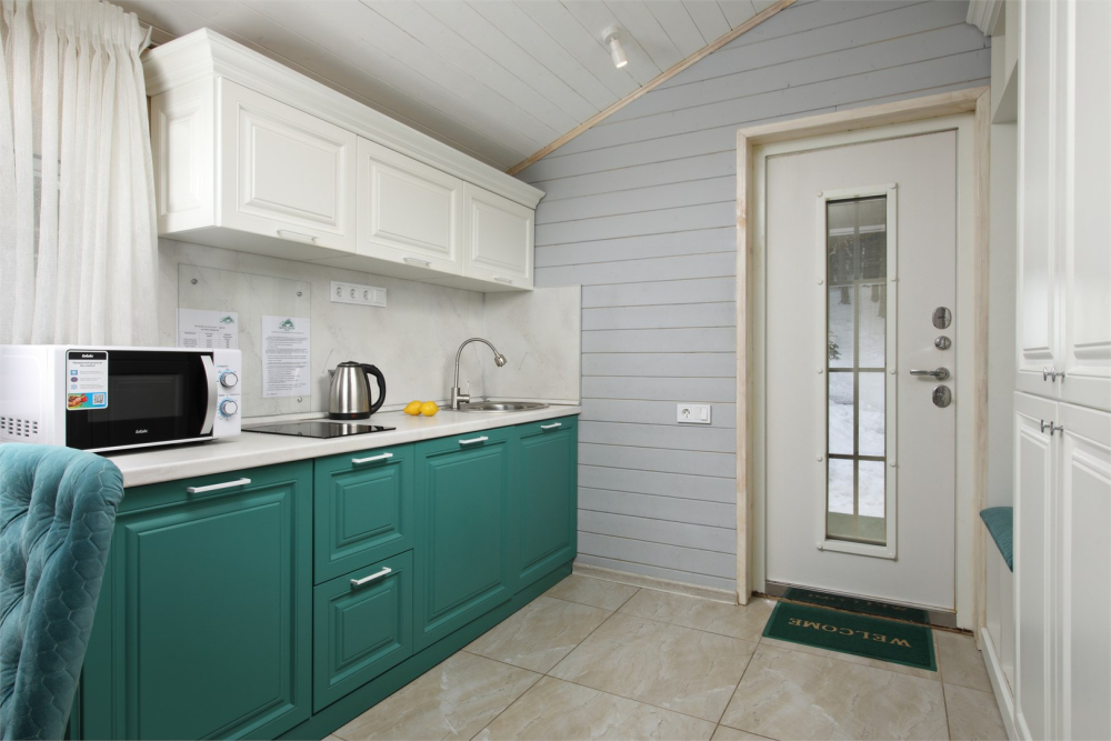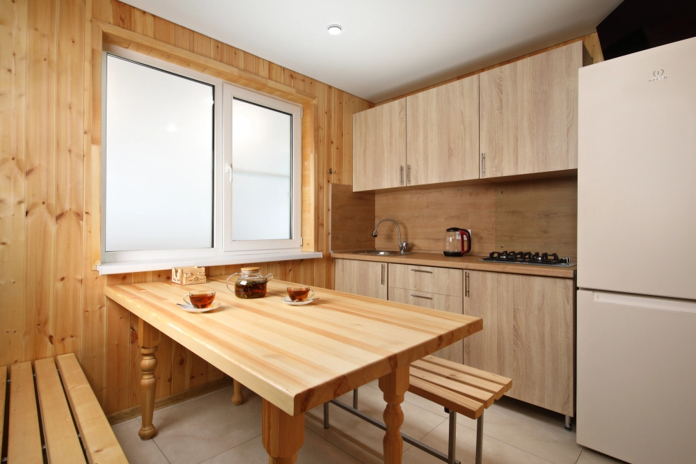 - Полностью укомплектованная кухонная зона.