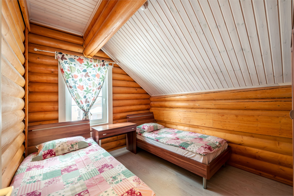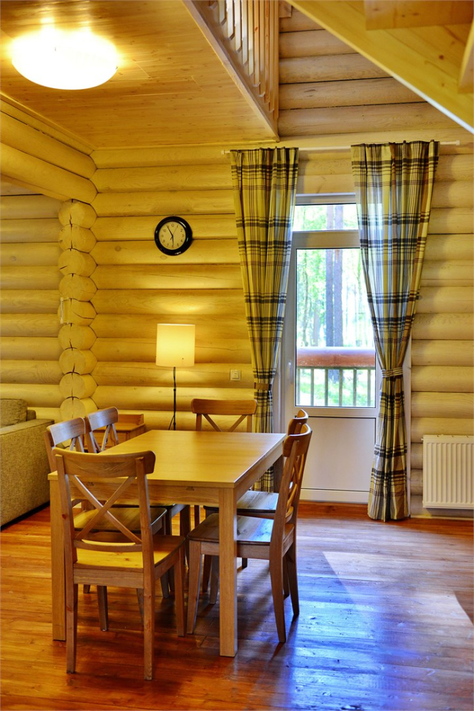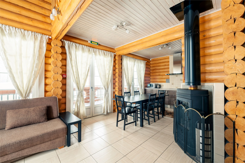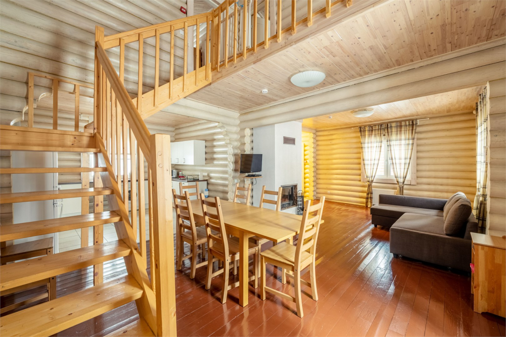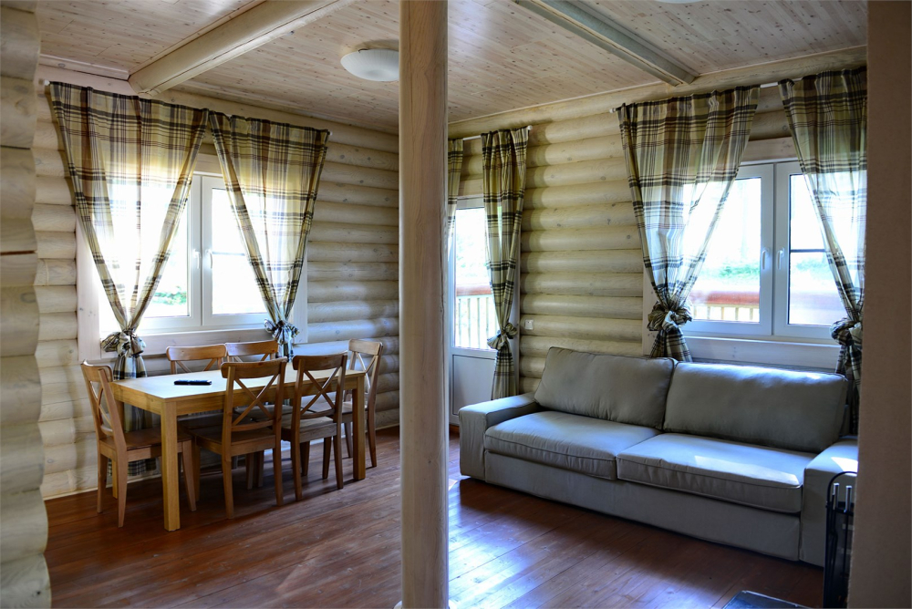 Гостям предлагаются 9 современных двухэтажных деревянных коттеджей различной вместимости. Каждый коттедж оборудован всем необходимым для комфортного проживания: