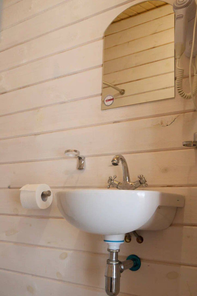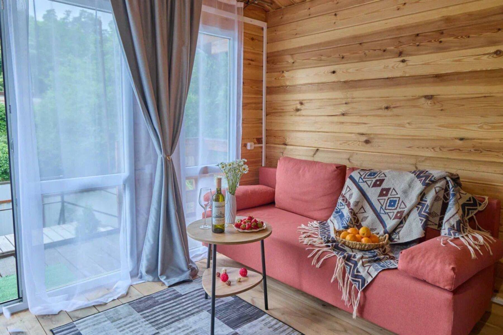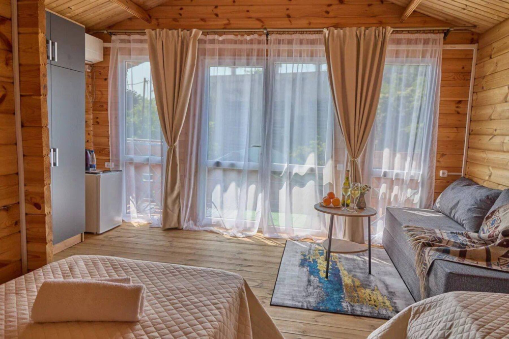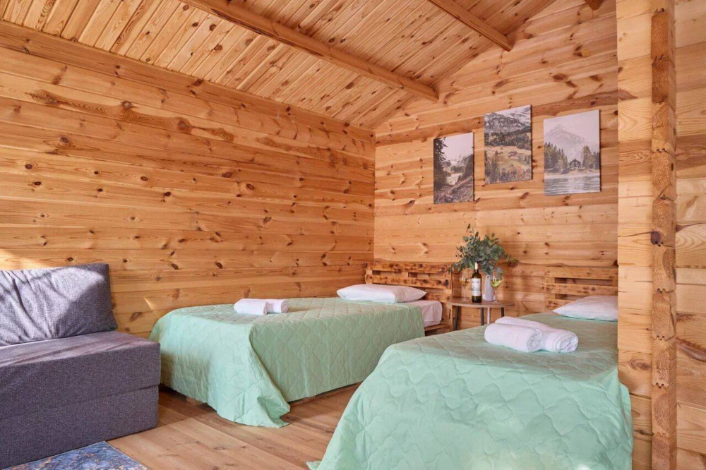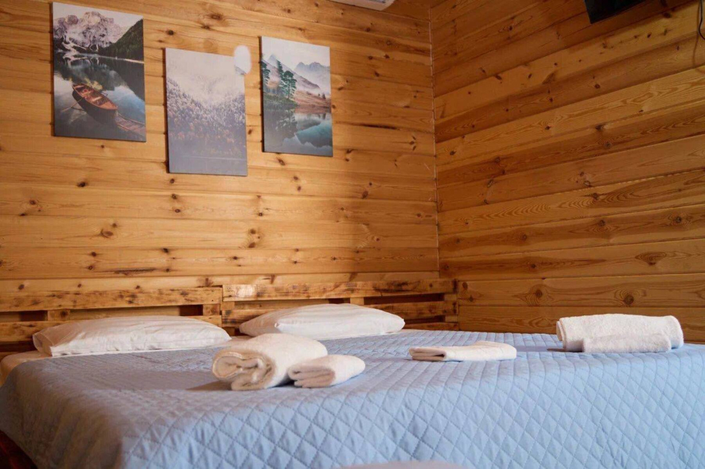 - Деревянный эко-дом на 4 человека с двумя раздельными или одной двуспальной кроватью