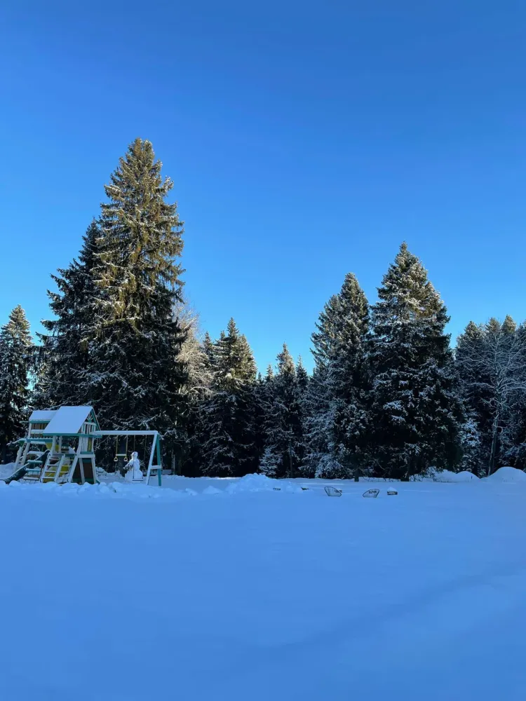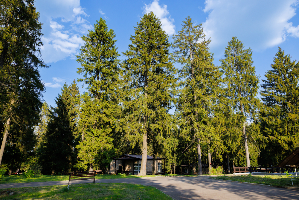 База отдыха находится в густом еловом лесу, создающем особую атмосферу уединения и спокойствия. Просторная территория площадью 5 гектаров идеально подходит для прогулок, отдыха и восстановления сил.