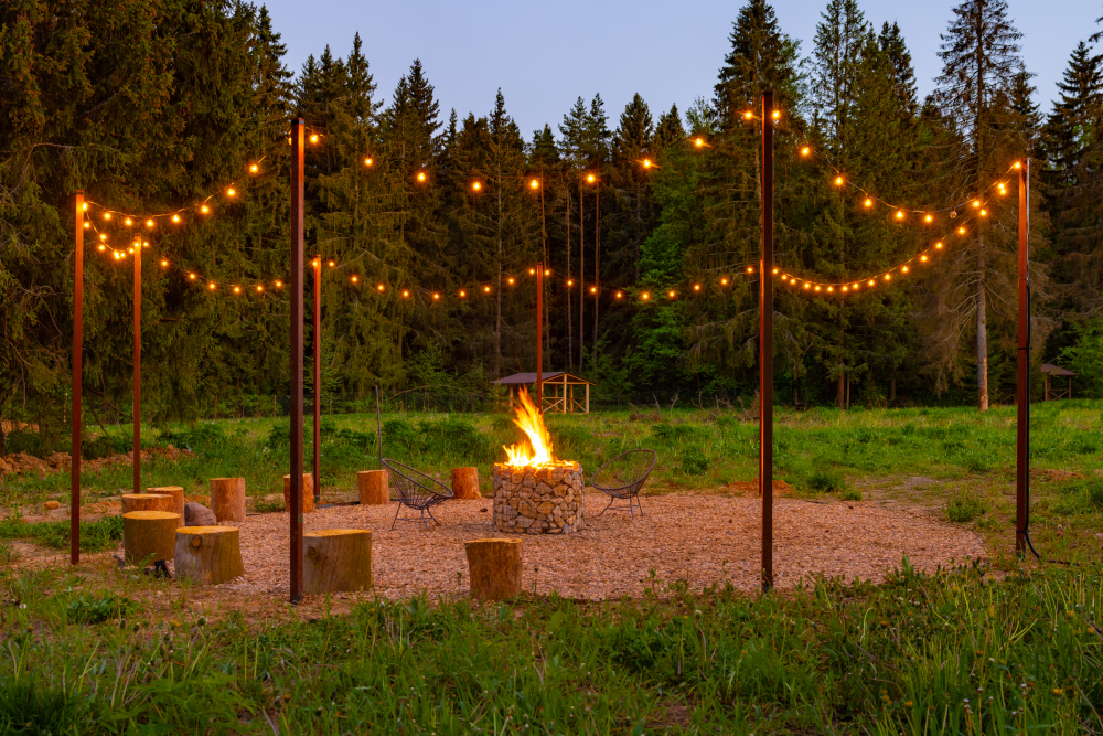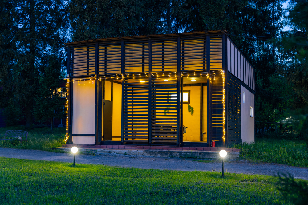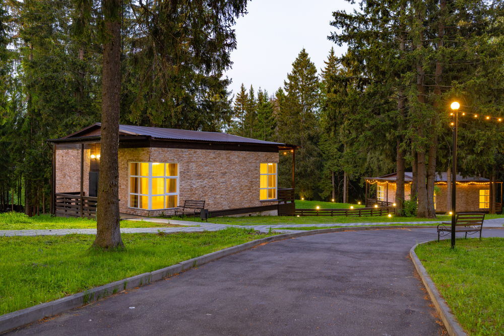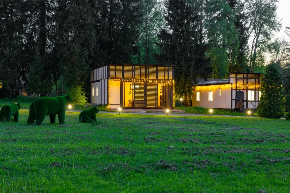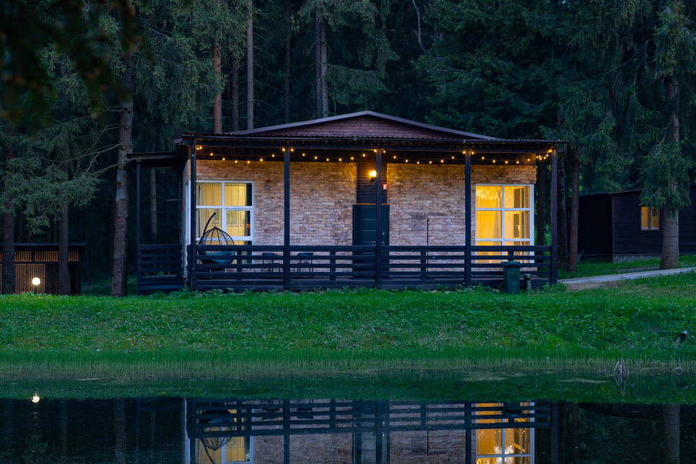 Для гостей предусмотрены современные и уютные домики с панорамными окнами, из которых открываются живописные виды на лес и природу.