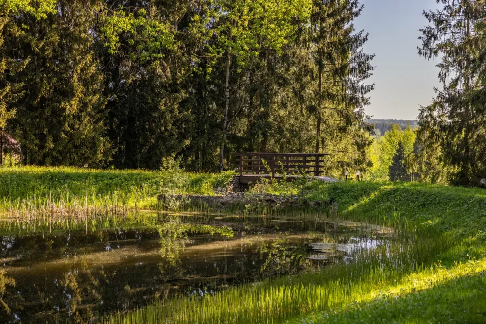 Особое очарование месту придаёт живописный пруд с рыбками и романтический мостик — идеальное место для прогулок, фотосессий и спокойного отдыха у воды.