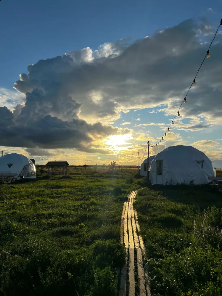 Наш глэмпинг расположен на живописном высоком берегу озера Ильмень — месте, где природа раскрывается во всей своей силе и красоте. Удобный спуск к воде позволяет легко добраться до озера, чтобы искупаться, порыбачить или просто насладиться тишиной.