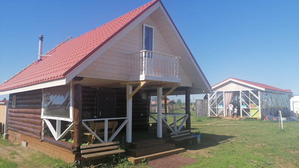 Баня есть около домиков Дом двухэтажный с баней.