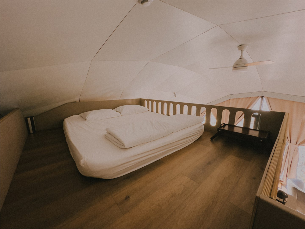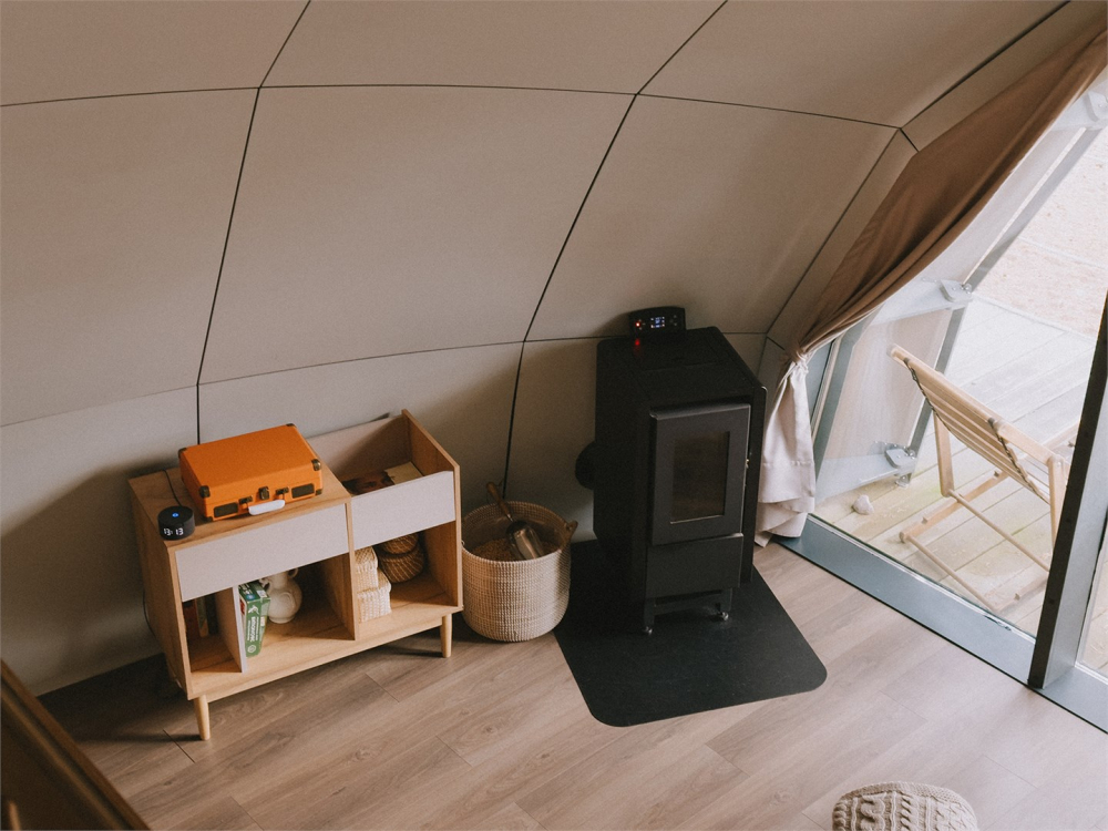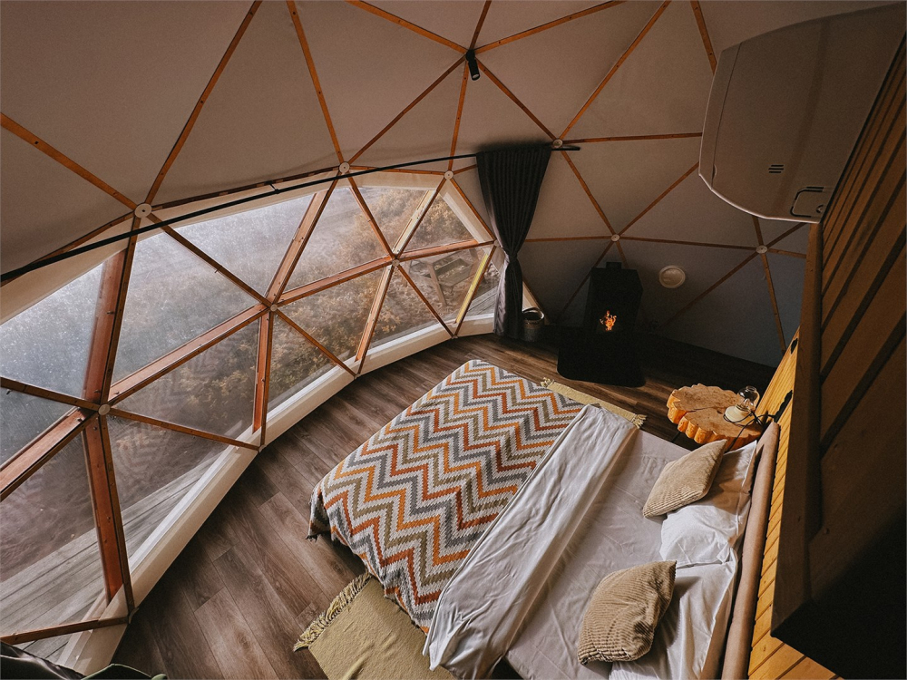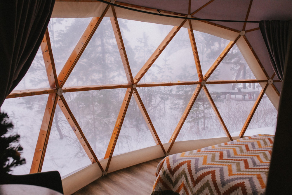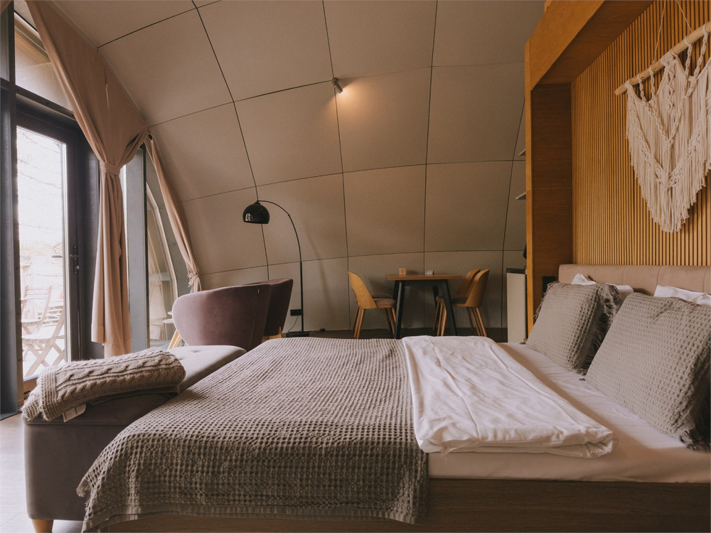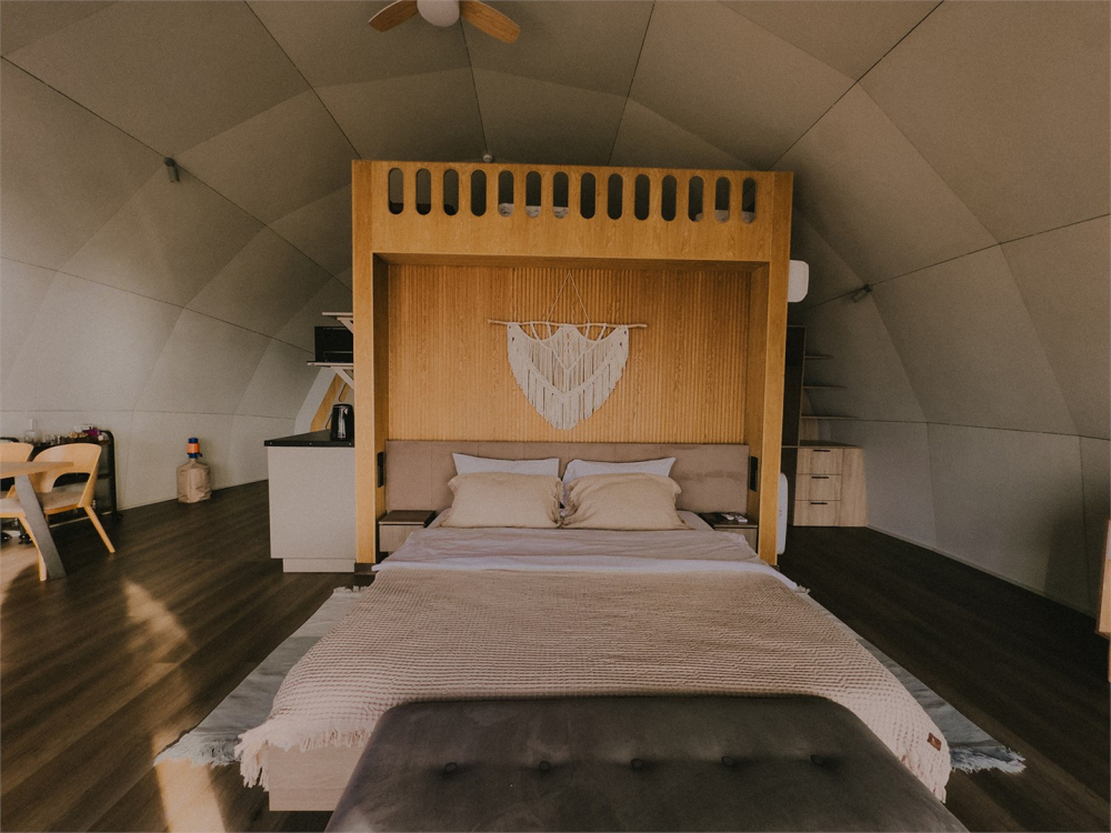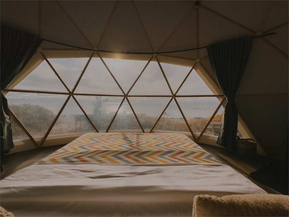 Купол с панорамным окном и видом на Финский залив. Площадь купола 28 квадратных метров, максимальное количество гостей 4 человека.
