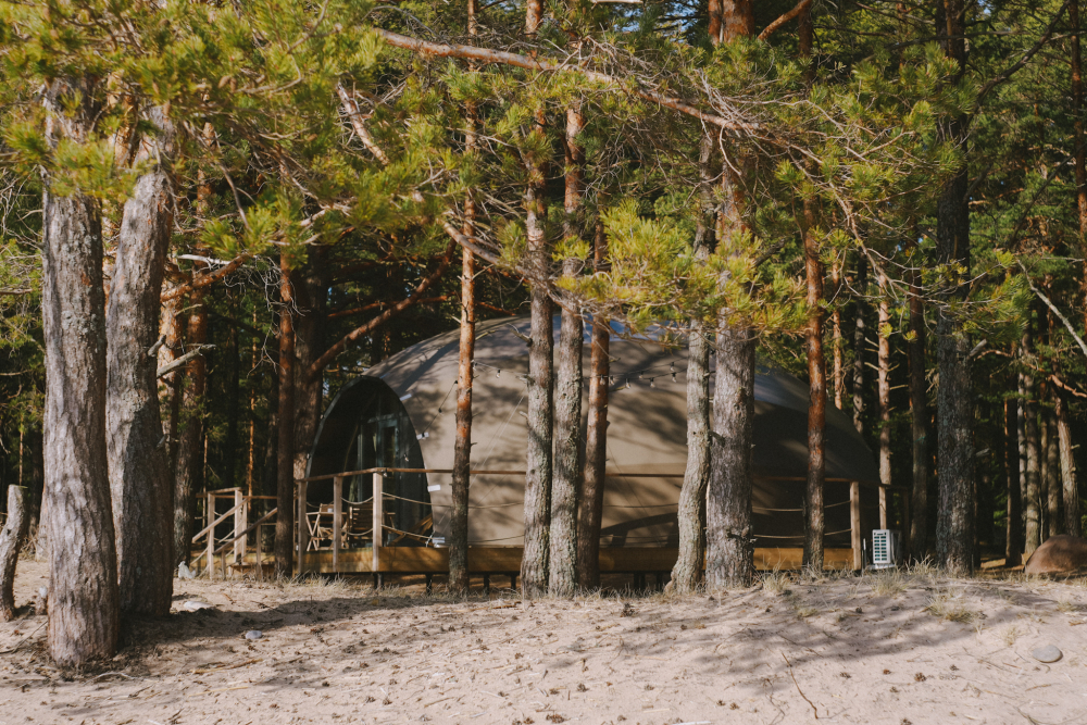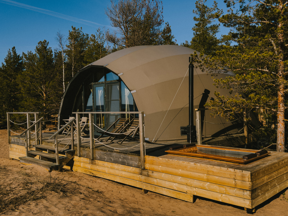 Купол с панорамным окном на второй линии от Финского залива. Площадь купола 28 квадратных метров, максимальное количество гостей 4 человека.