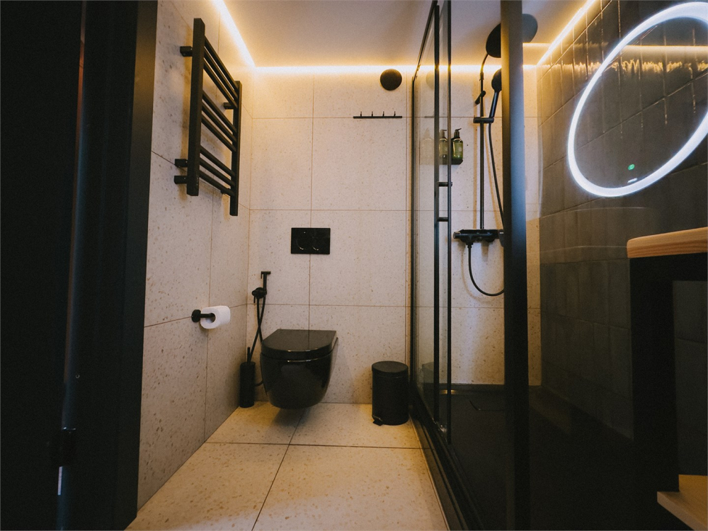 Улучшенный шатёр площадью 25 м2, с индивидуальным душем, туалетом и умывальником.
