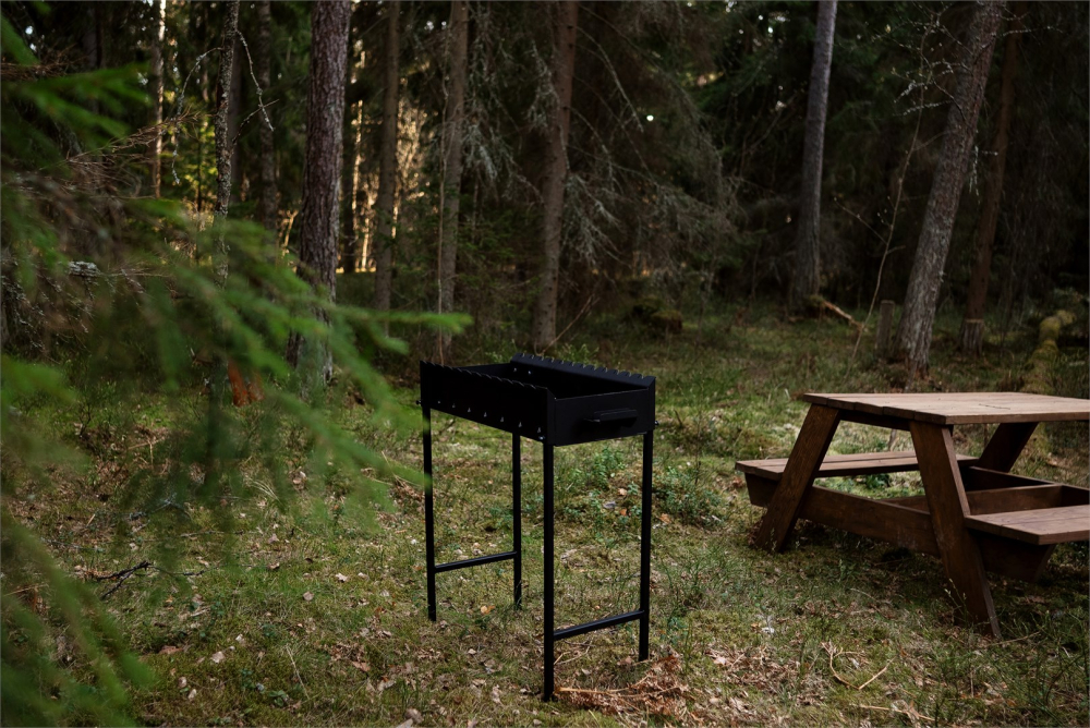 На прилегающей территории шатра: освещение гирляндой, индивидуальный мангал, деревянный стол с лавками для 4х гостей.