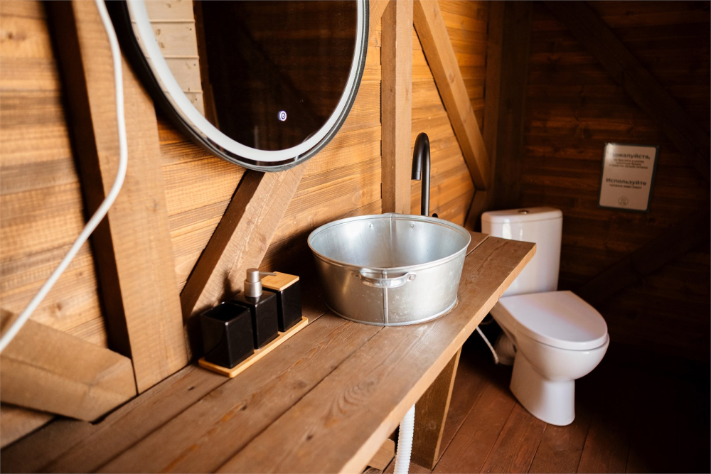 Санузел, душ и умывальники общие, находятся в 50 метрах от шатра.