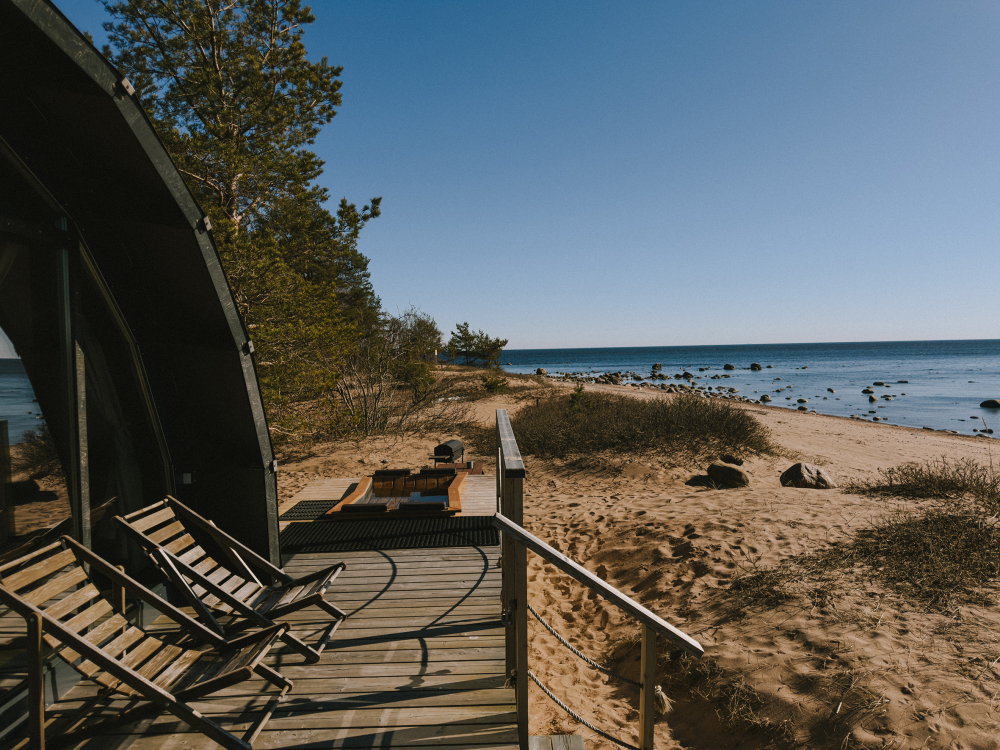 Геокупол Люкс 52 кв.м на Финском заливе находится рядом с пляжным баром. Проживая в этом Люксе вы можете пользоваться эксклюзивными условиями доставки и сервиса из бара в летний период.