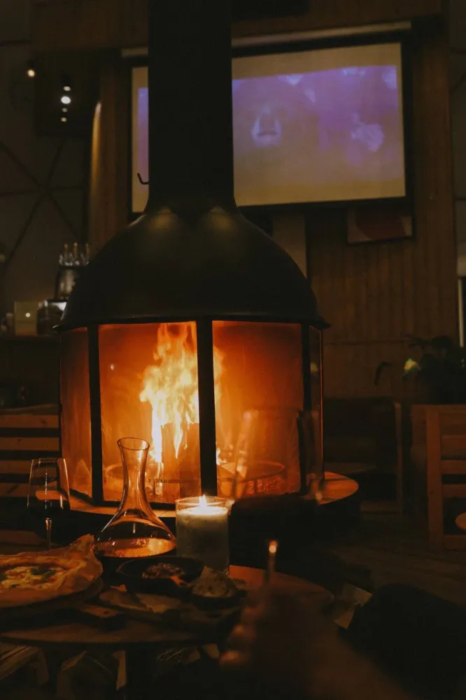 Ресторан с камином и панорамными окнами - авторская кухня, вдохновленная северной природой.