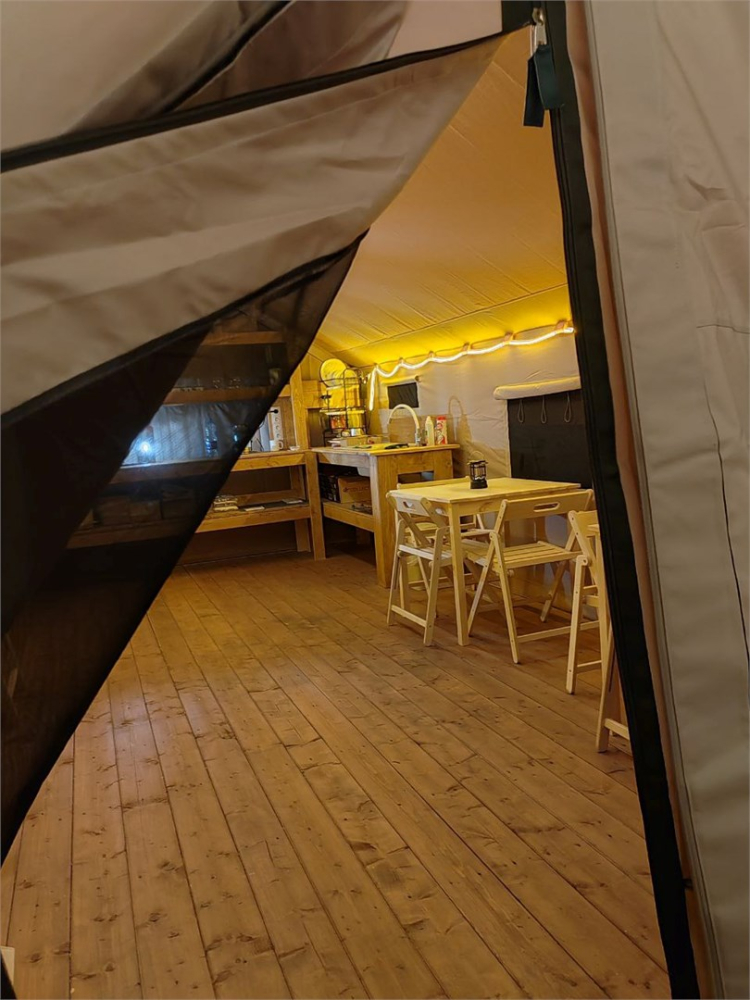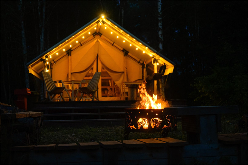 У эко дома и тентов есть собственные мангальные зоны.Решетка и шампура предоставляются.