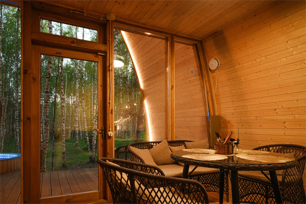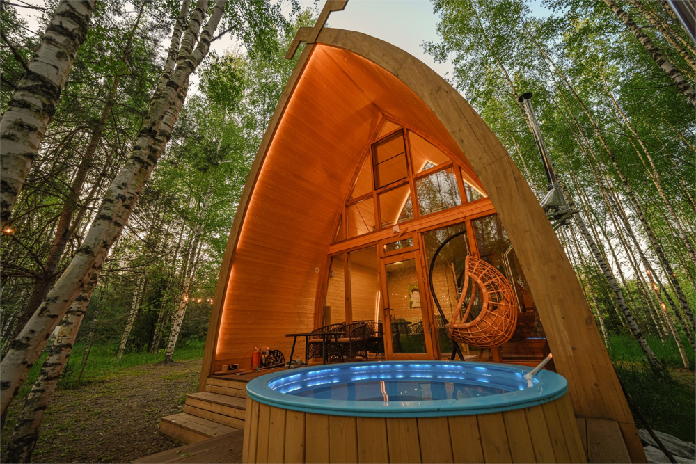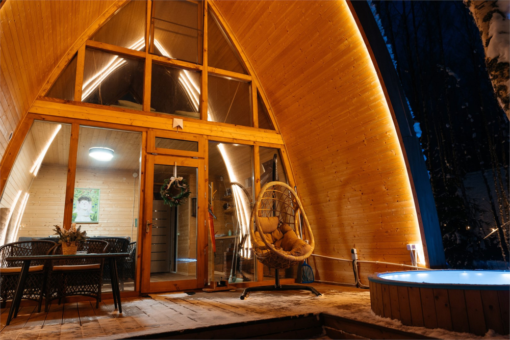 Для домиков Панорамный эко-дом с горячей купелью, Сафари-тент, Апарт-отель услуга недоступна.