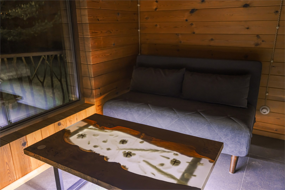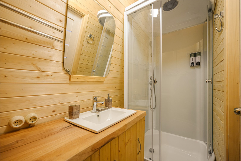 Также на территории есть общие горячий чан. Для домиков Апарт-отель услуга недоступна.