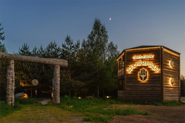 Эко-парк площадью 7 гектаров расположен в экологически чистом и живописном месте между Санкт-Петербургом и Великим Новгородом. Территория объединяет хвойный и лиственный лес, создавая атмосферу уединения и гармонии с природой. Пространство дополняют арт-объекты в природном стиле, вдохновленные славянскими сказками, прогулочные тропы и выход к реке. Гостям предлагаются комфортные форматы проживания, сочетающие удобство и близость к природе: Услуги и досуг Эко-парк создан для тех, кто ищет тишину, уединение и качественный отдых вдали от города. Это место для восстановления сил, общения с природой и наслаждения натуральными продуктами в комфортных условиях.Эко-парк в окружении леса