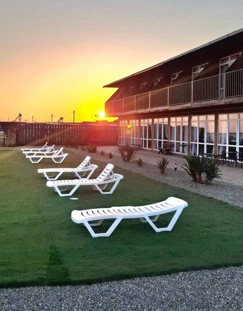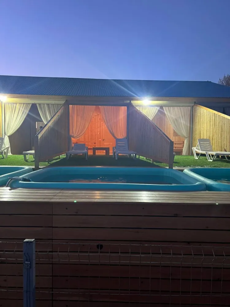 - Отдых: Большой подогреваемый бассейн и лаунж-зона с шезлонгами.