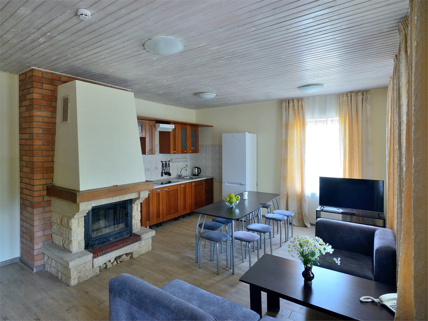 Удобства: В коттеджах "Сосна", Ольха", "Ольха люкс" и "Калина" есть свой настоящий камин и финская сауна.