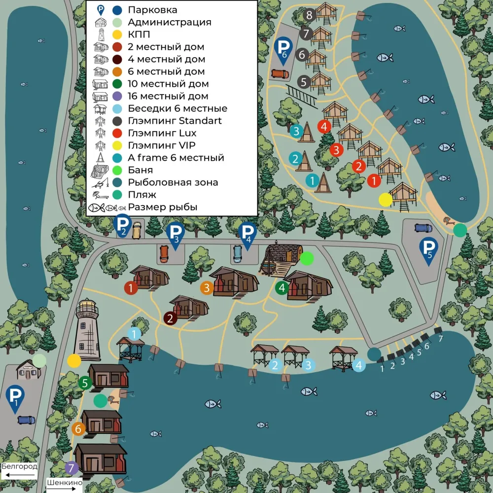База отдыха расположена всего в 20 км от Белгорода, в живописном месте, где гости могут отвлечься от городской суеты и насладиться природой.