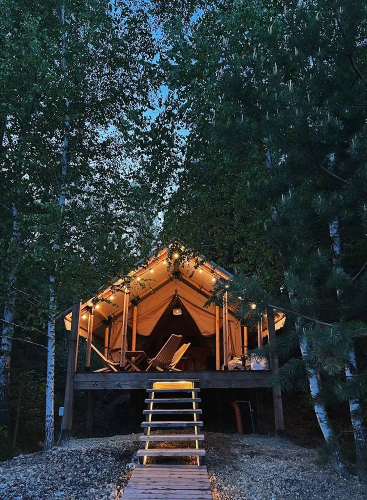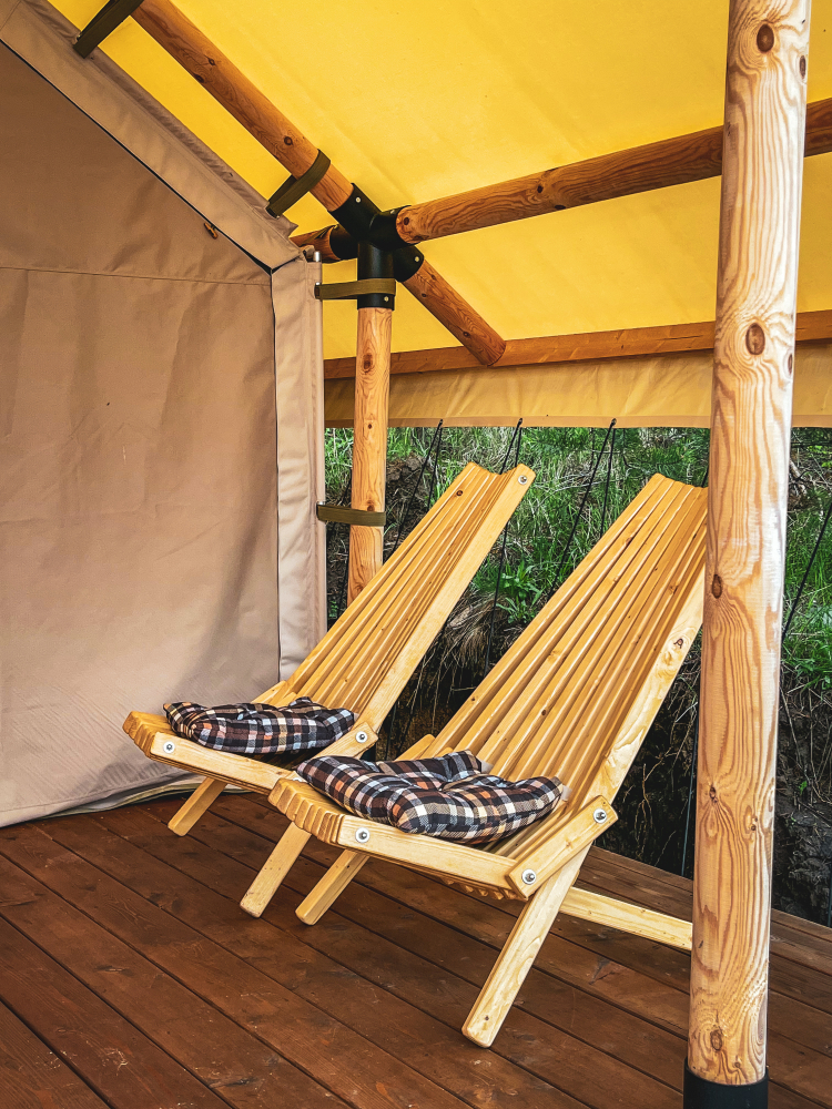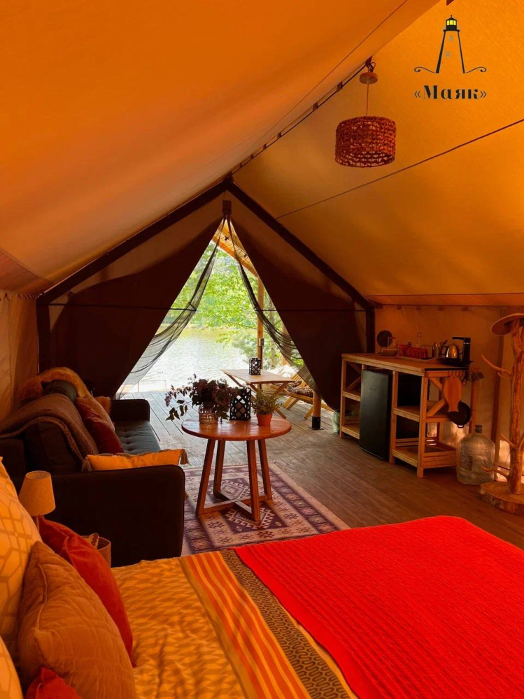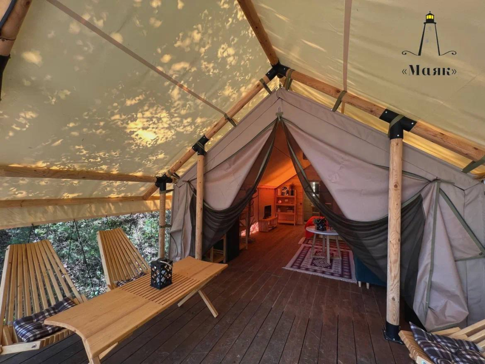 Место отдыха – комфортабельные палатки на свежем воздухе.