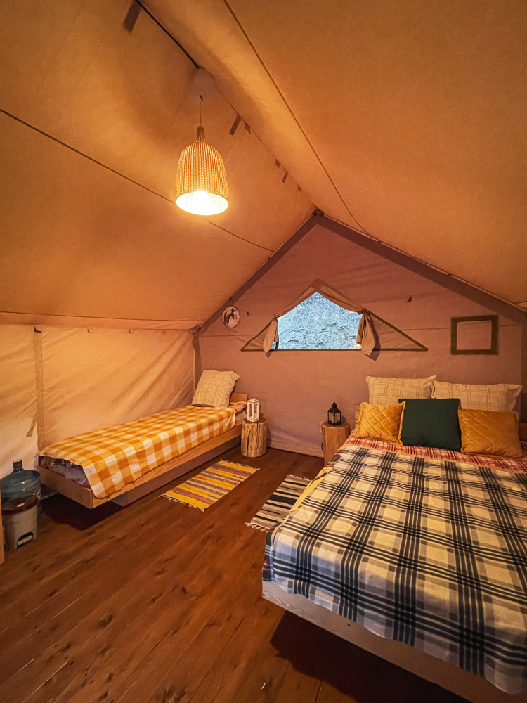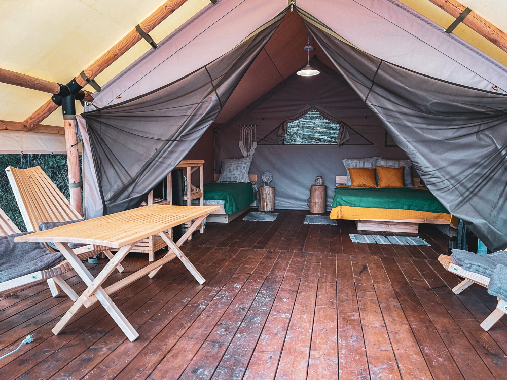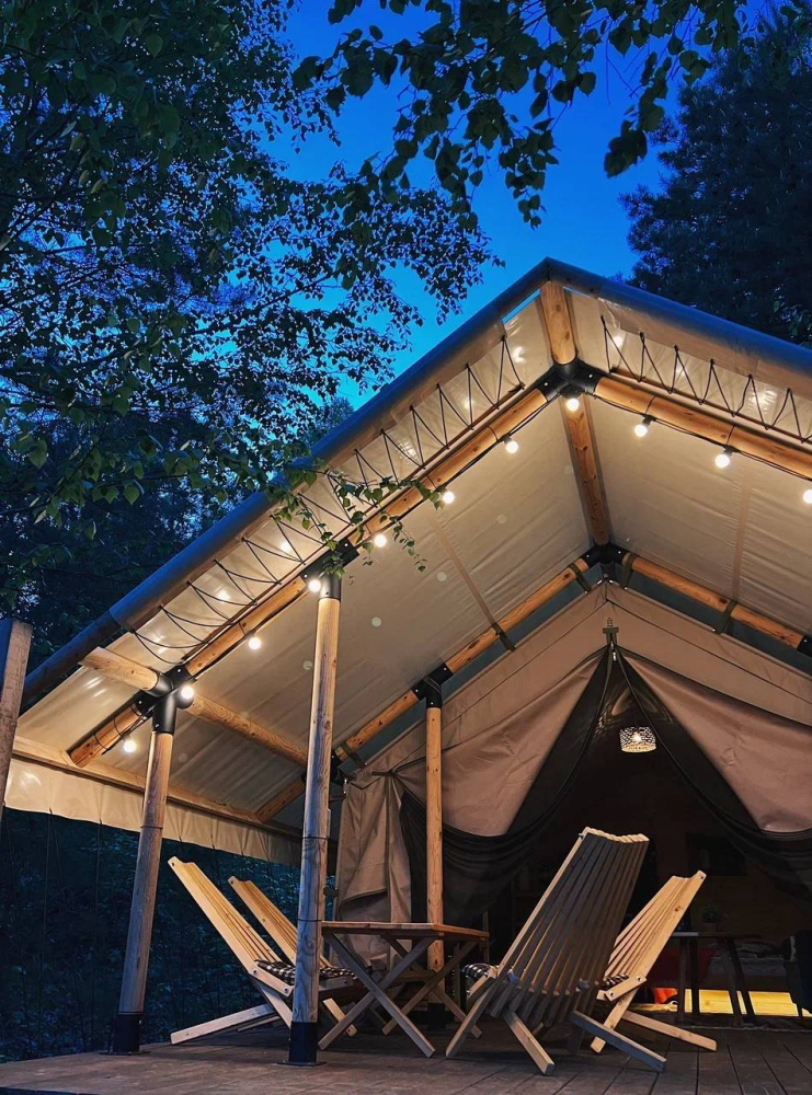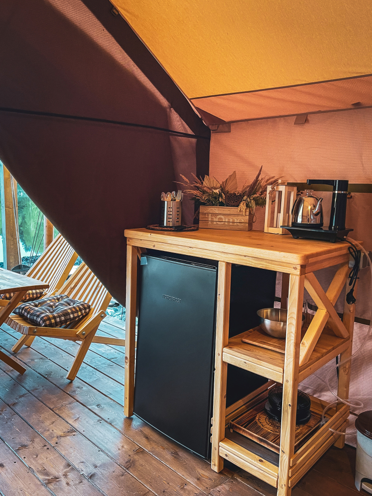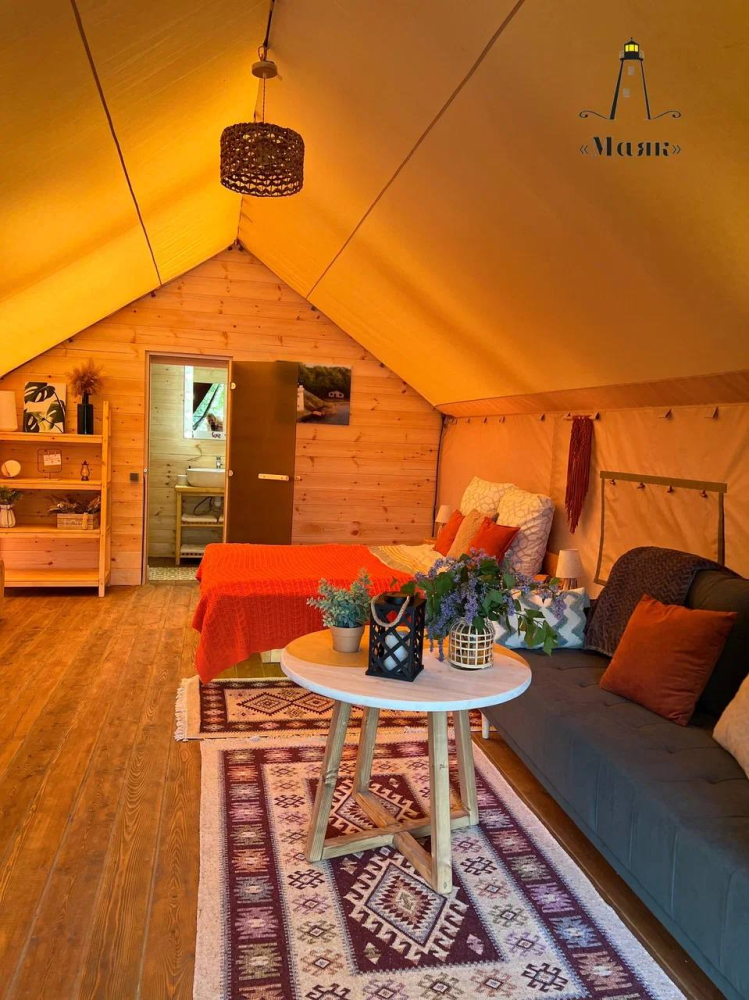 Место отдыха – комфортабельные палатки на свежем воздухе.
