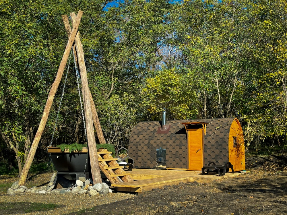 Русская баня на дровах – вместимость парилки до 14 человек, выход к пляжу, банный чан и купель.